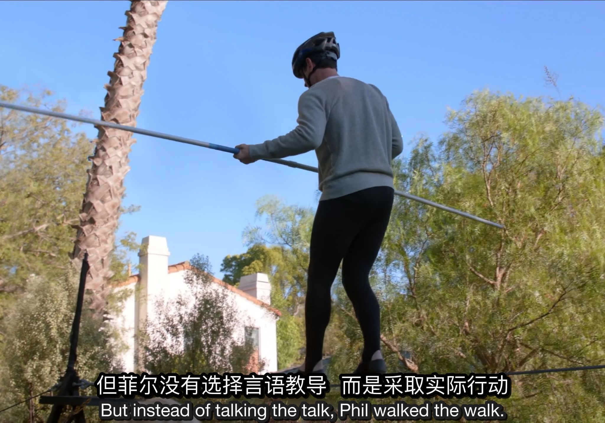 开始,Phill看电视上的演员走钢丝很酷,觉得自己也许也有天赋,