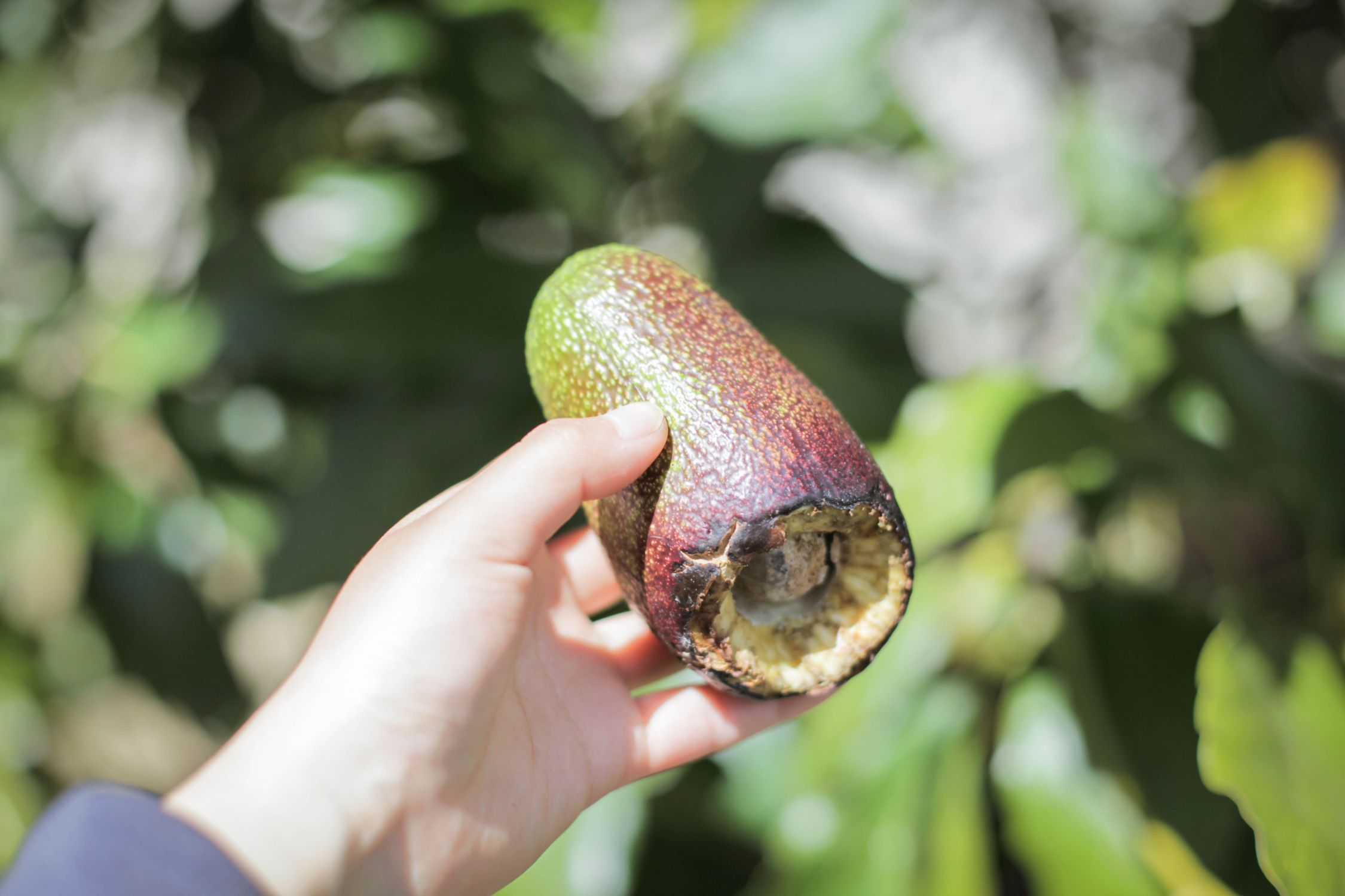 有一棵牛油果树尤为高大,Faraz说这是在过去几十年的种植里(松乐农场since1999!),收成最好的一种。他称之为dalicado——最适应大理气候的牛油果树;也叫mother tree——部分新树苗来的第一年,会嫁接上它的枝条。