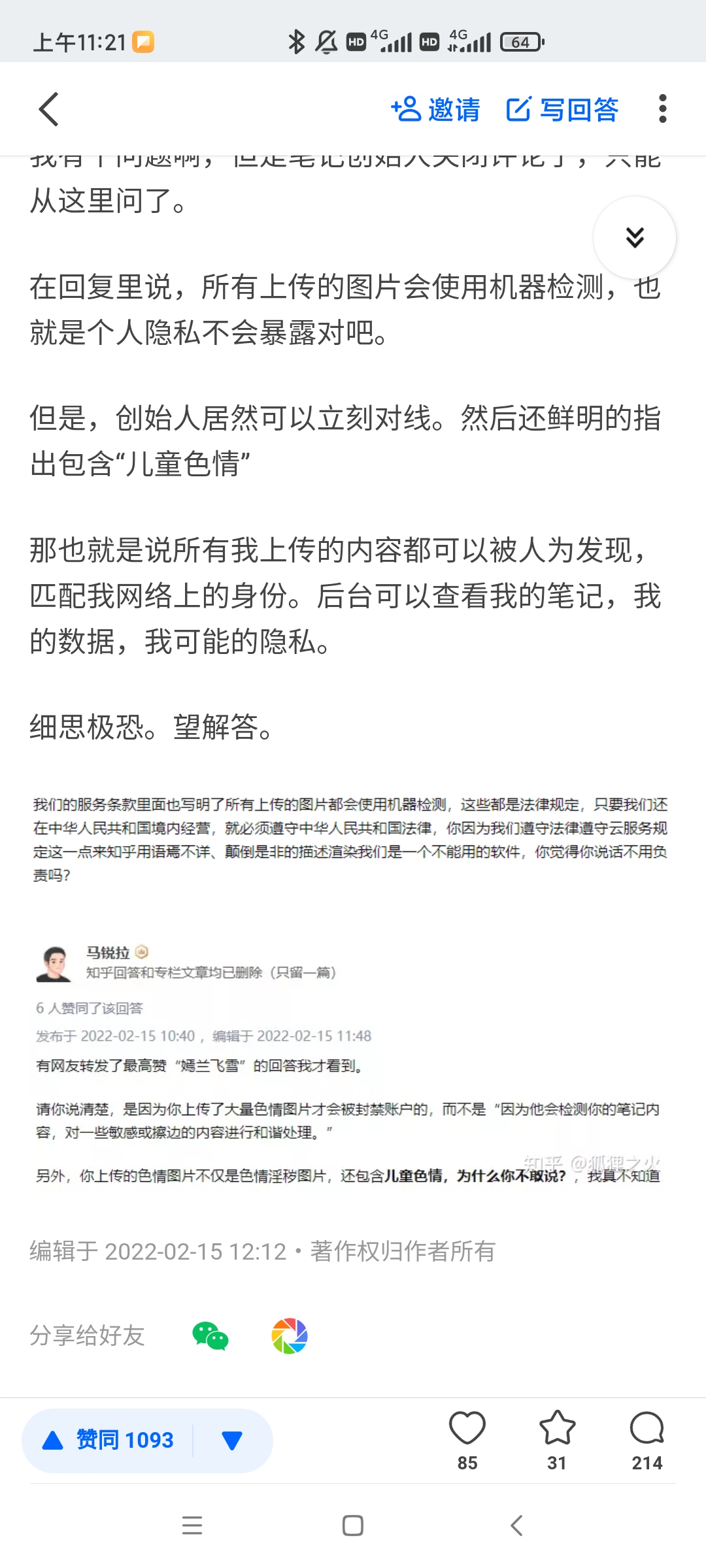 ⑤所有知乎用户都发现该APP在检测用户内容、并且匹配到知乎信息,CEO还会告诉公众。