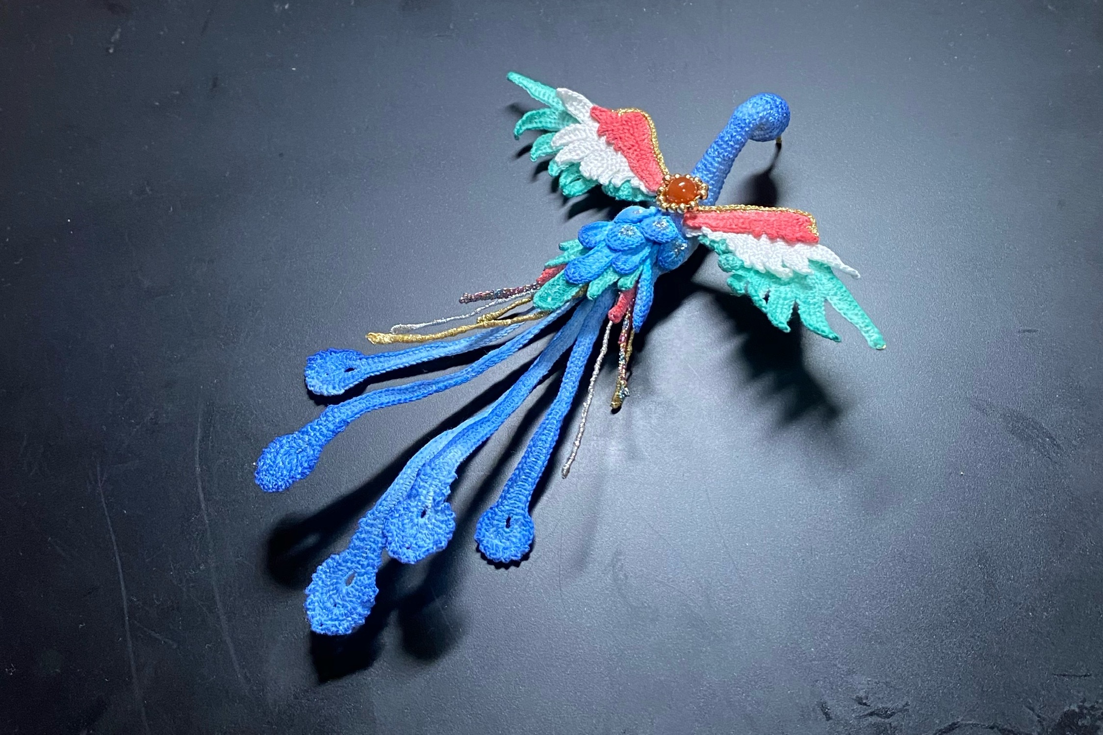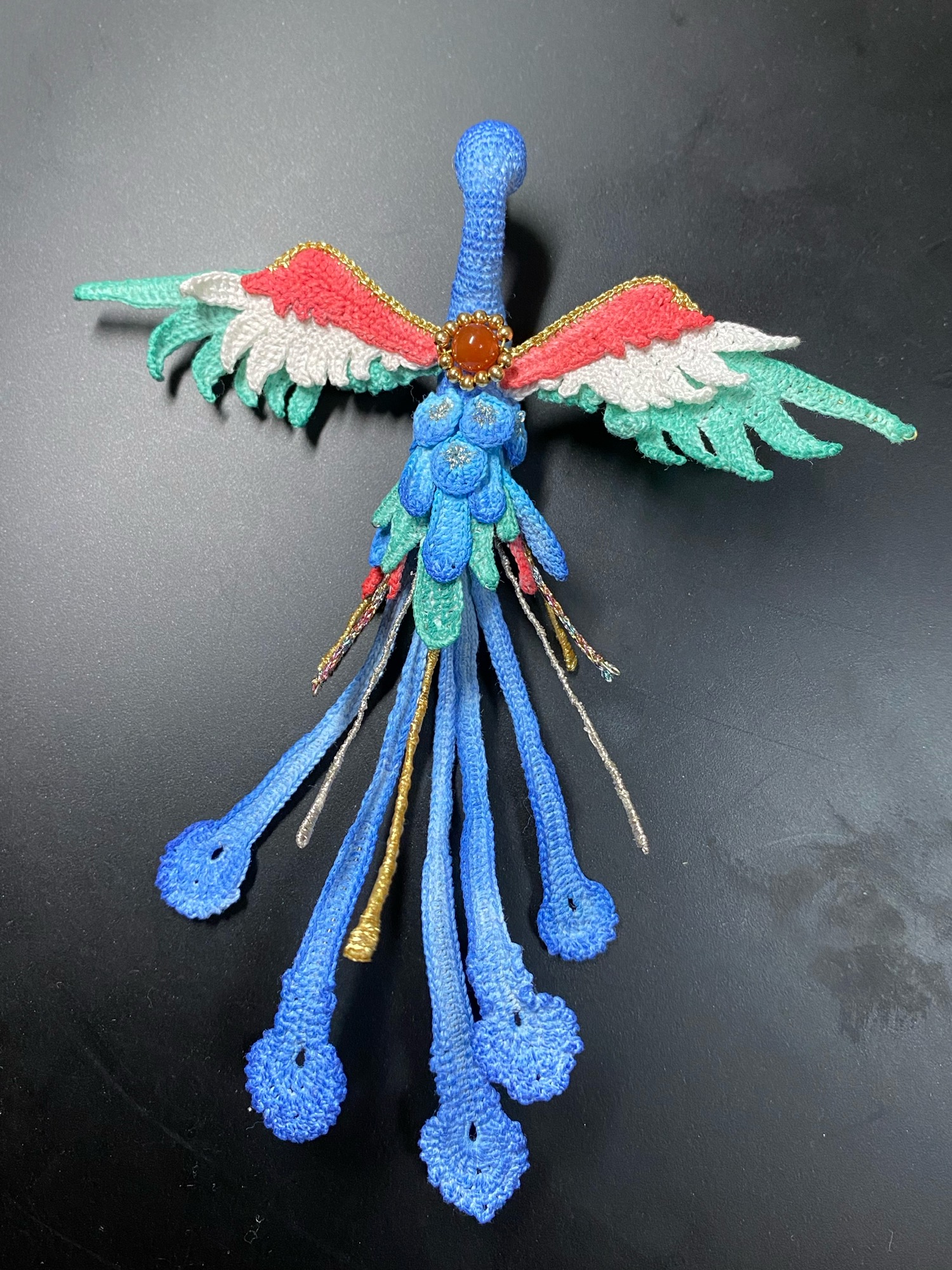 昨天把以前的材料翻了一下半天,成功找到一颗和凤凰匹配的玛瑙珠,按照完美契合!超开心😆