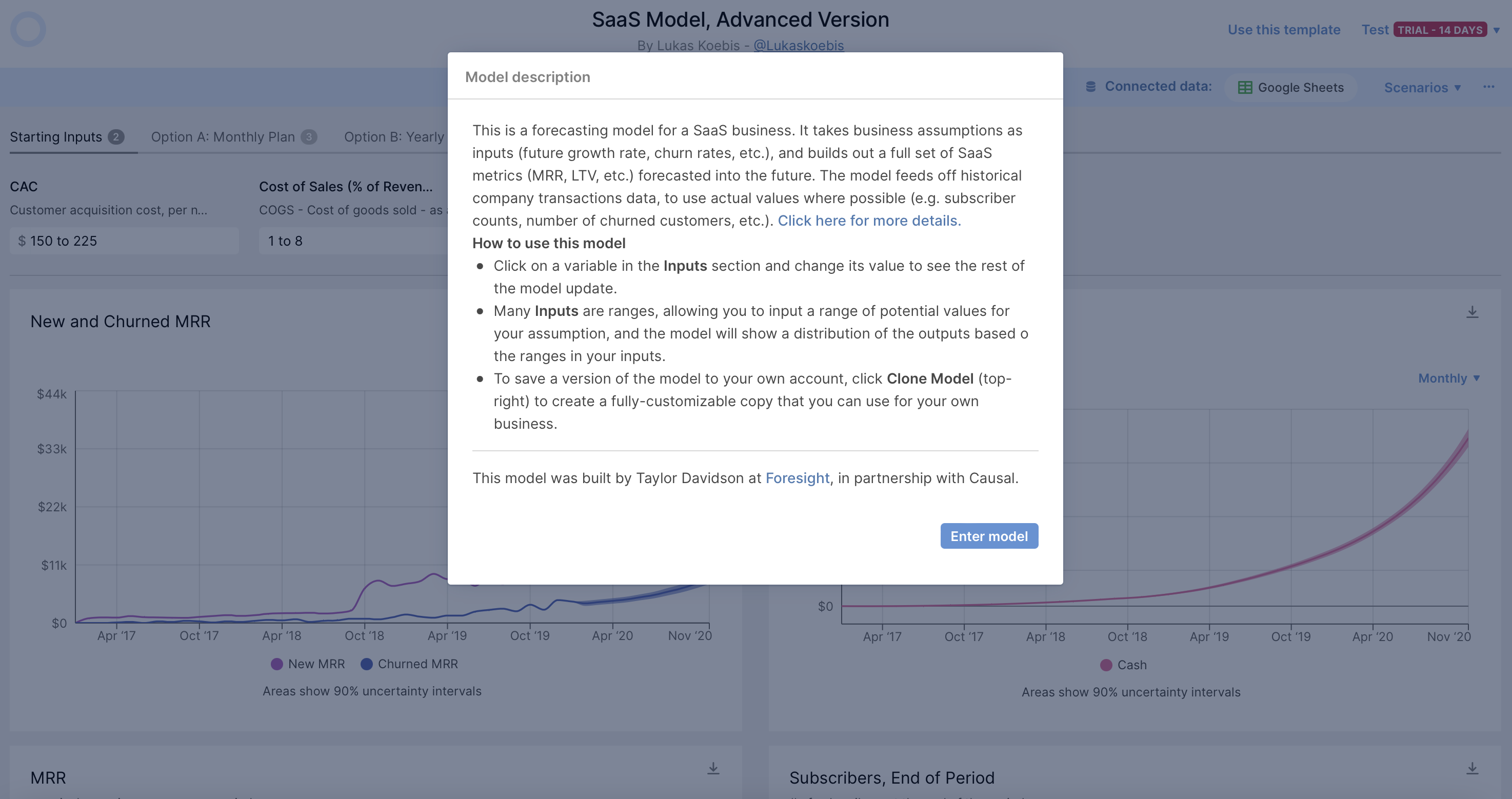想做一个新的个人项目!为了这个新项目,我去学习了一下订阅制的收入模型。我发现了一个叫 Causal 的产品(刚融了很多钱),相当于 Figma、Notion 形式的 Excel,口号是 a new way to think and work with numbers。用户可以多人在线协作做报表,数据图可以自动生成,鼠标点击切换数据细致程度、数据展示方式。