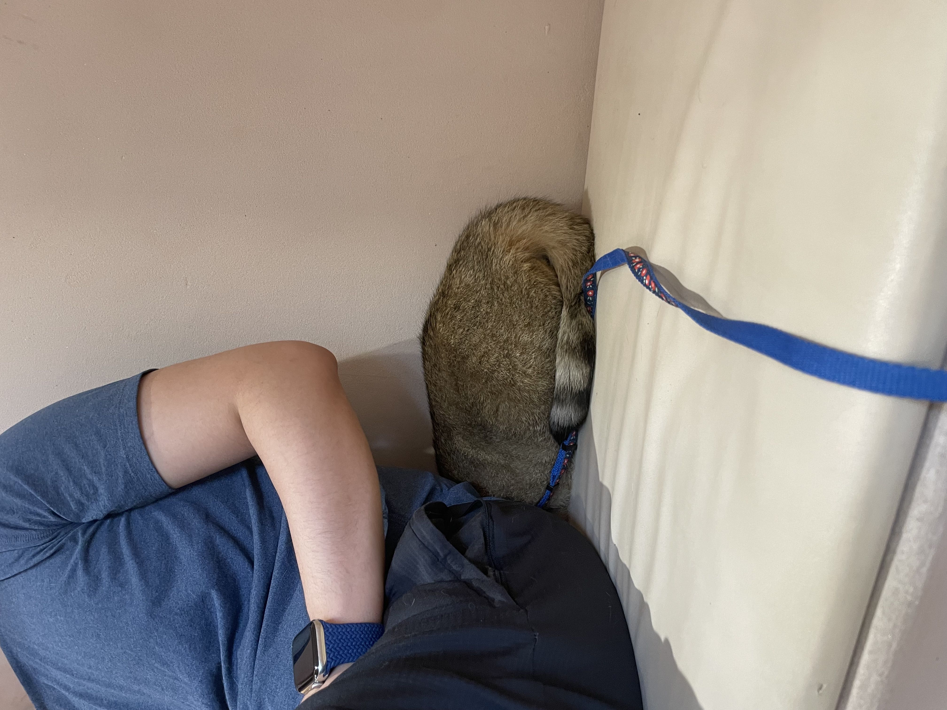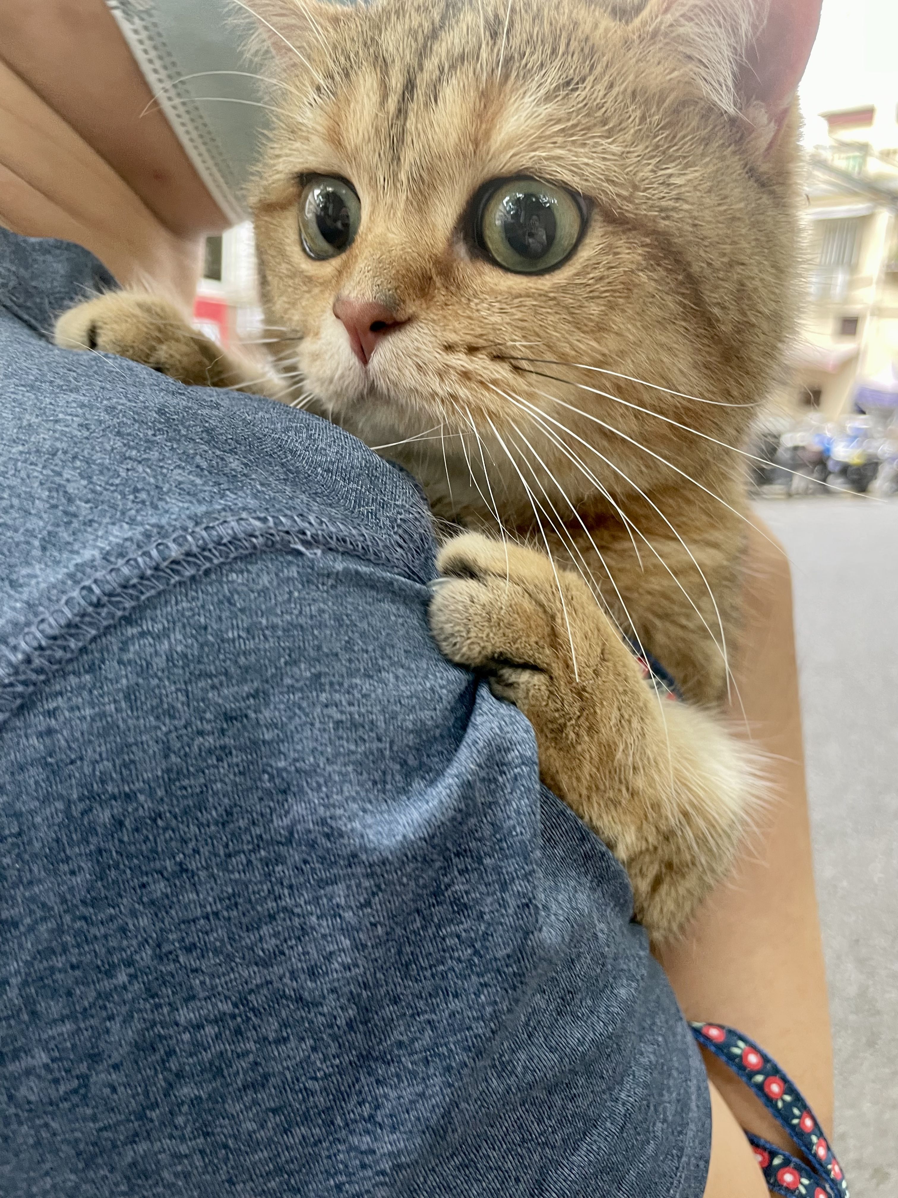 一对朋友带着猫猫出街了,又怂又可爱