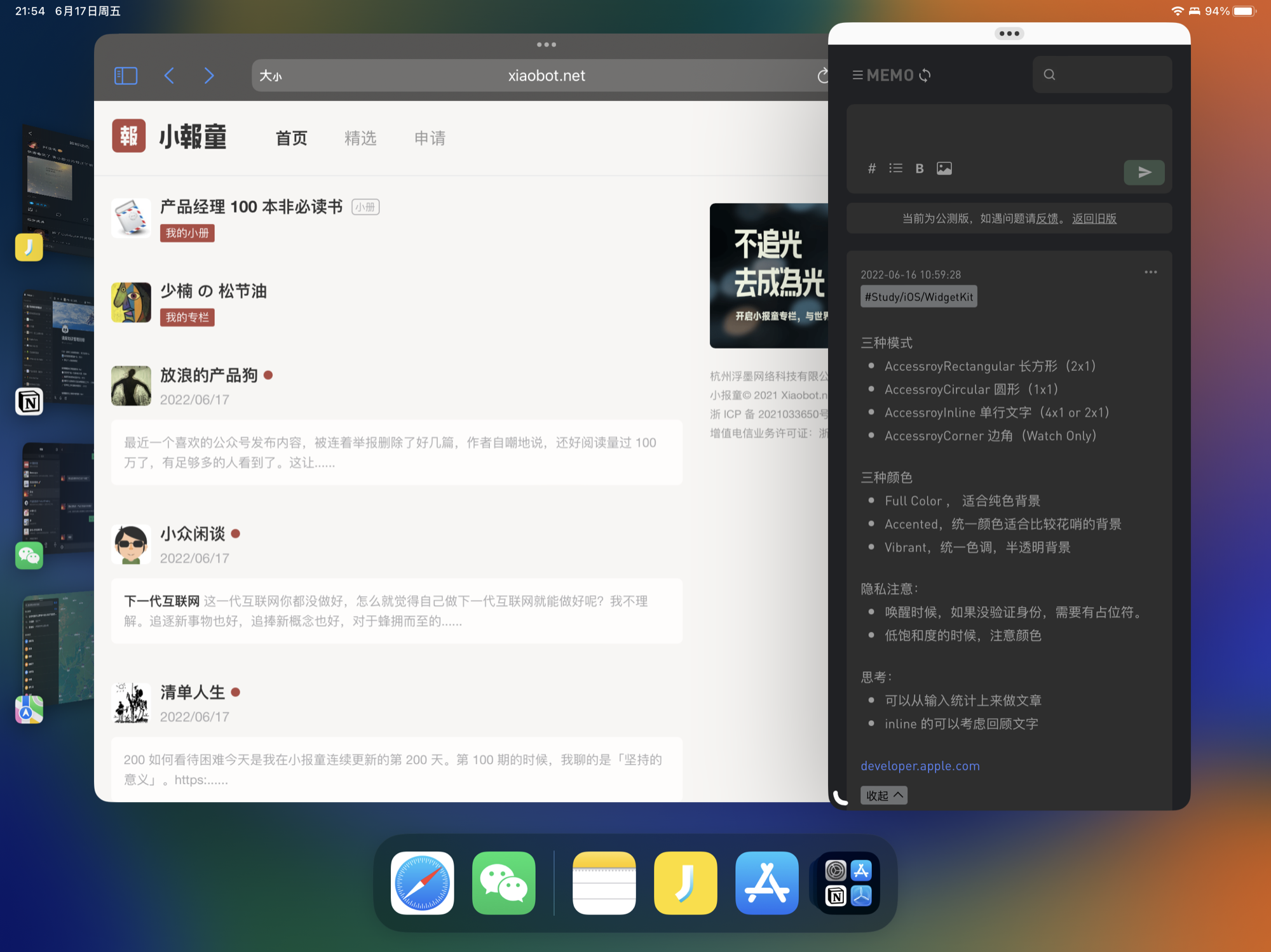 其实之前iPad Pro 一直没用起来就是因为都是全屏,会让人缺少一种掌控感,而且多个应用切换的时候会特别麻烦。