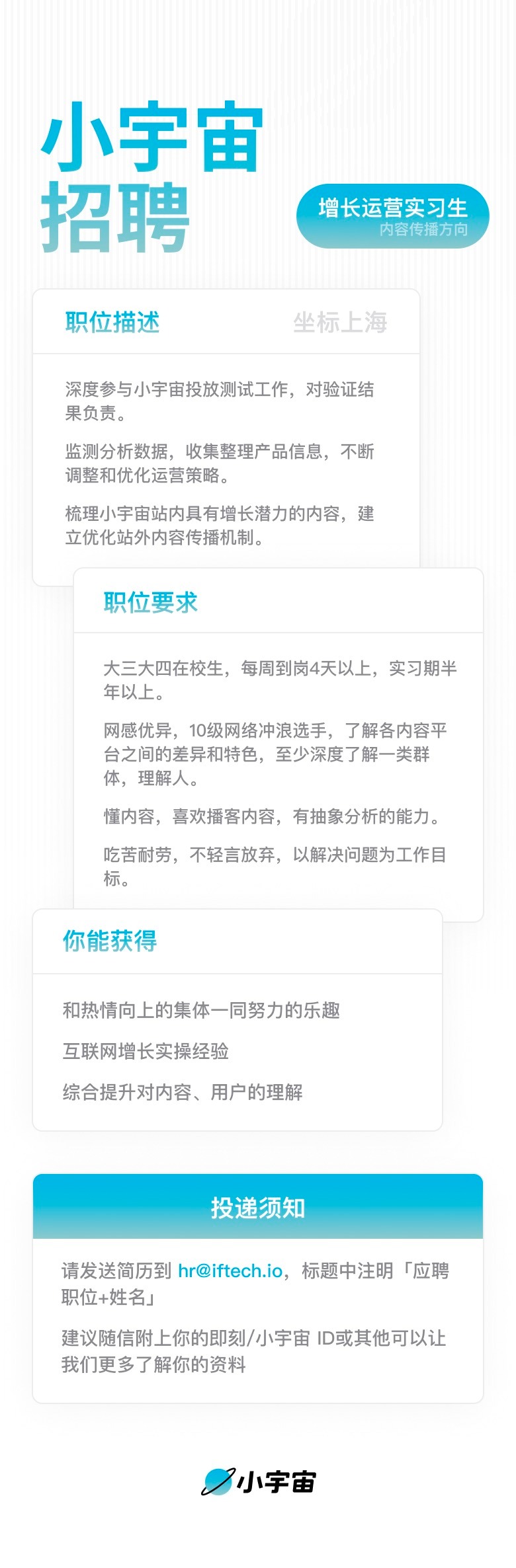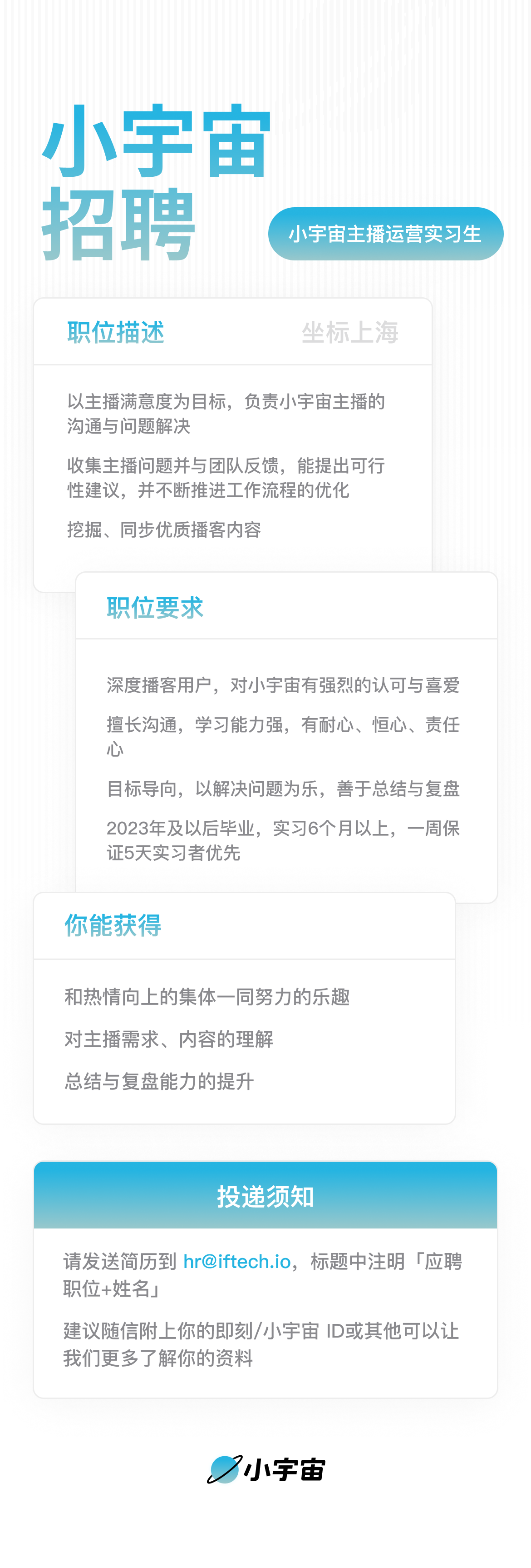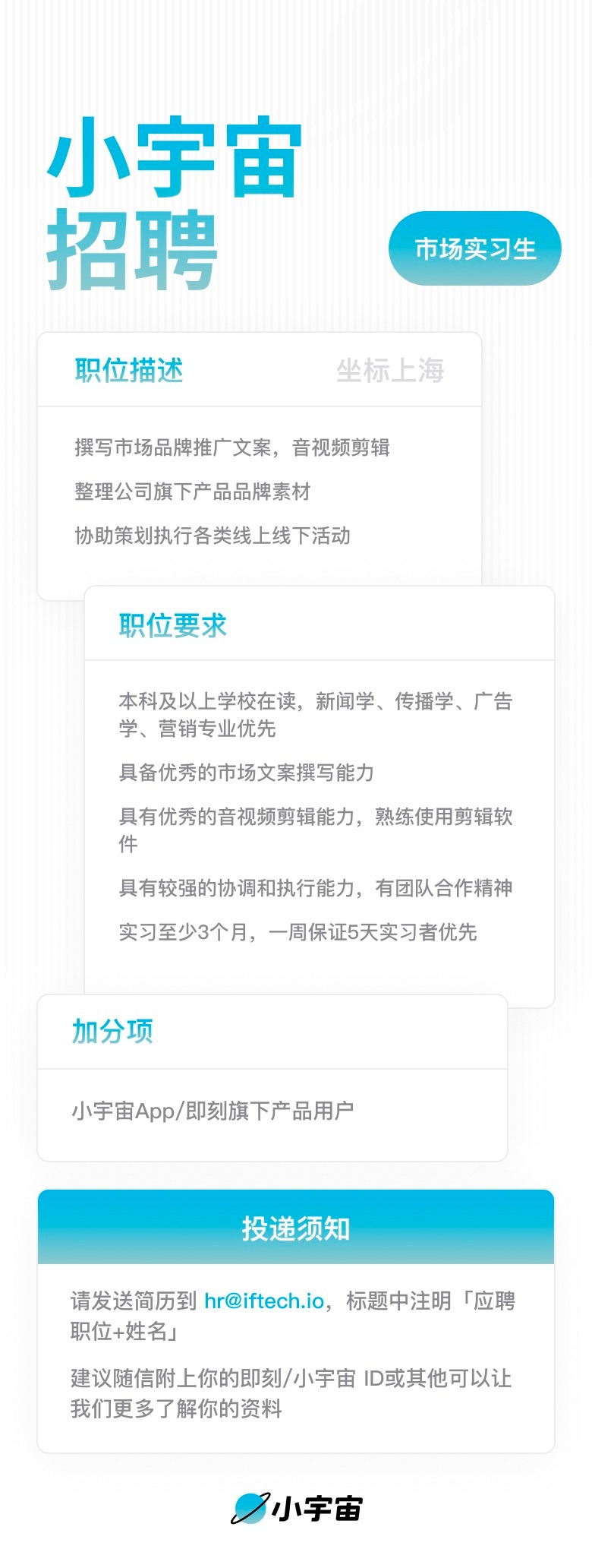 招人!小宇宙招市场和运营实习生啦!另外正职岗位的UI设计师也在招。