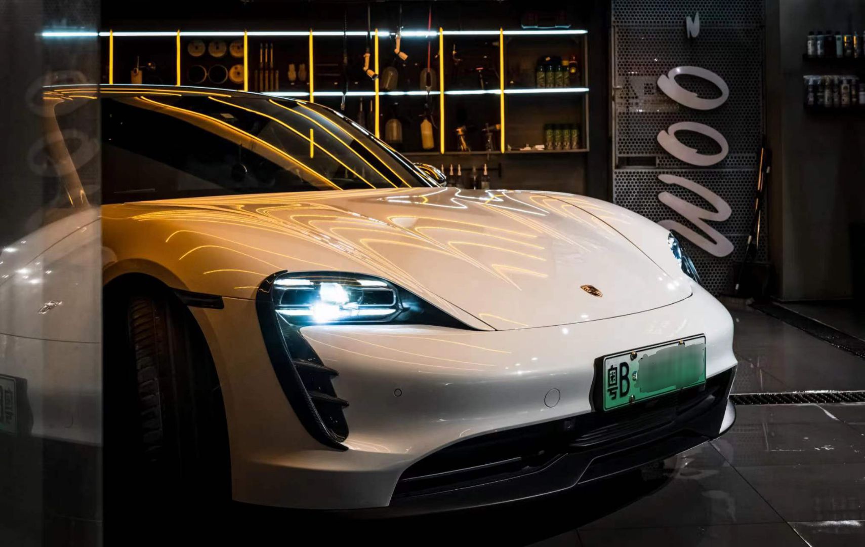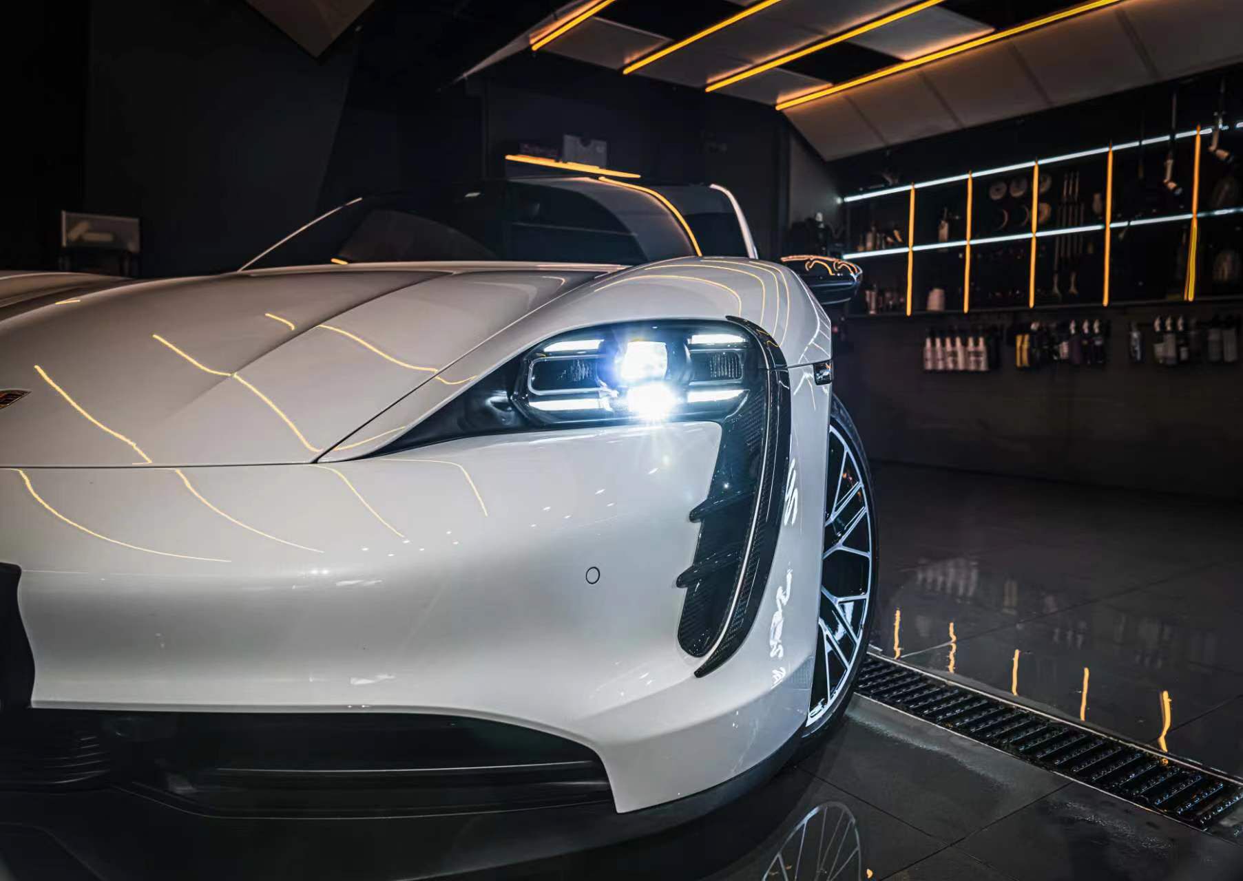 改装了迈莎锐碳纤维套件,在乖巧的白色车身里面再加一点战斗感。