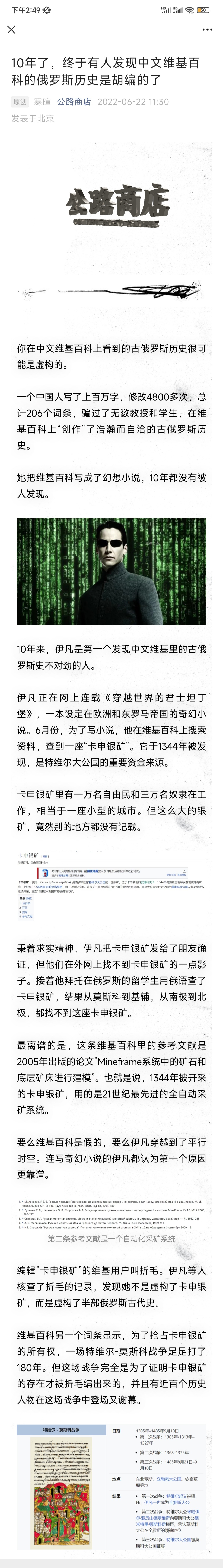 一个待业在家、不懂俄语、甚至不懂英语的高中毕业生,在维基百科上虚构了半部浩瀚而自洽的俄罗斯古代史,长达上百万字,修改4800多次,总计206个词条,骗过了无数教授和学生。