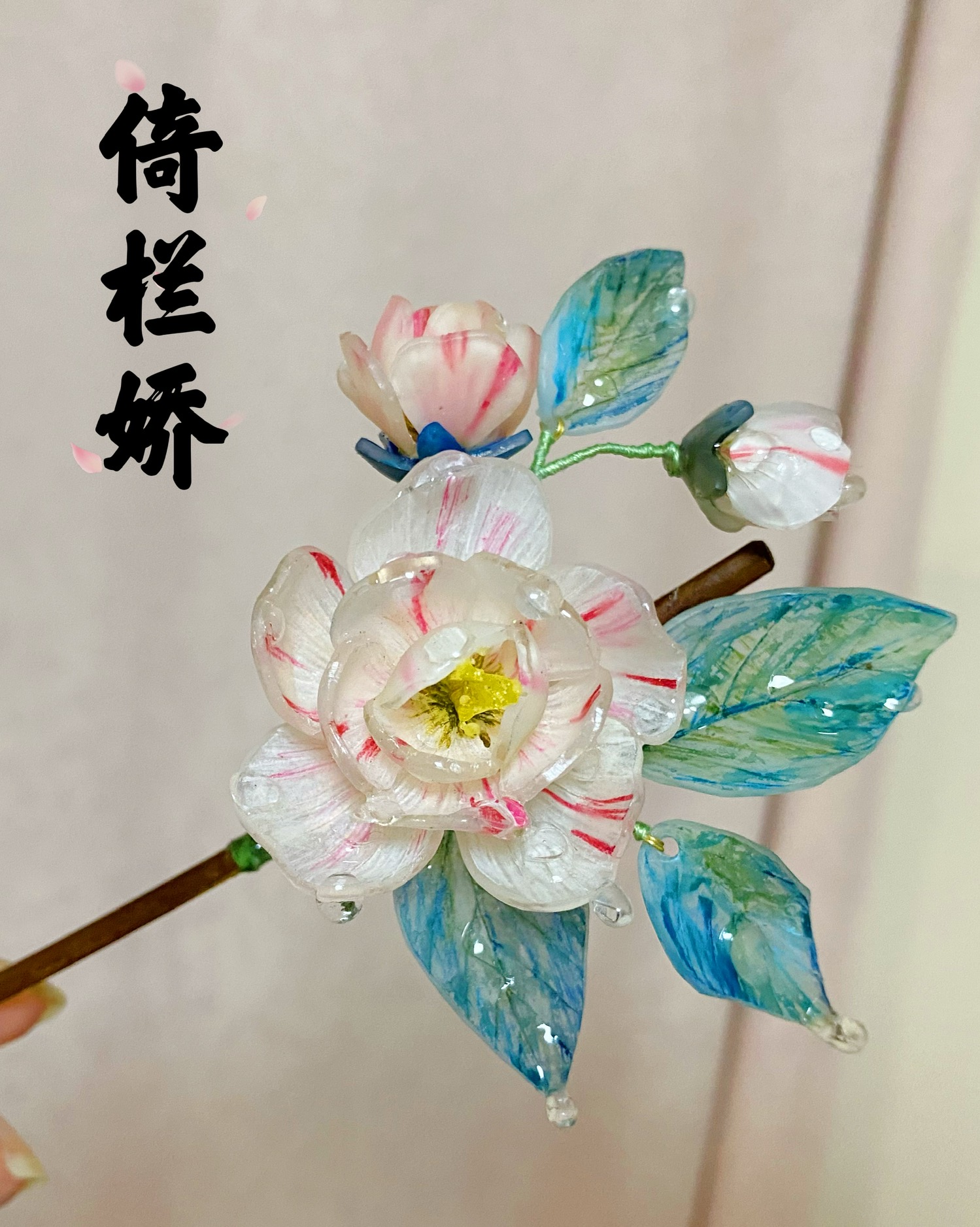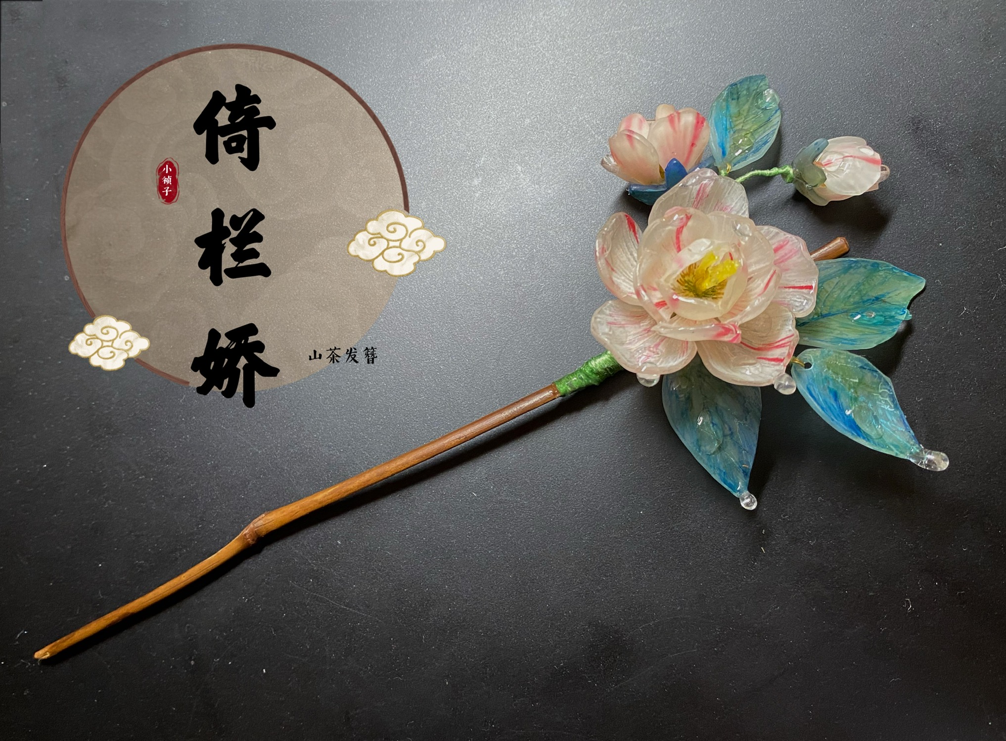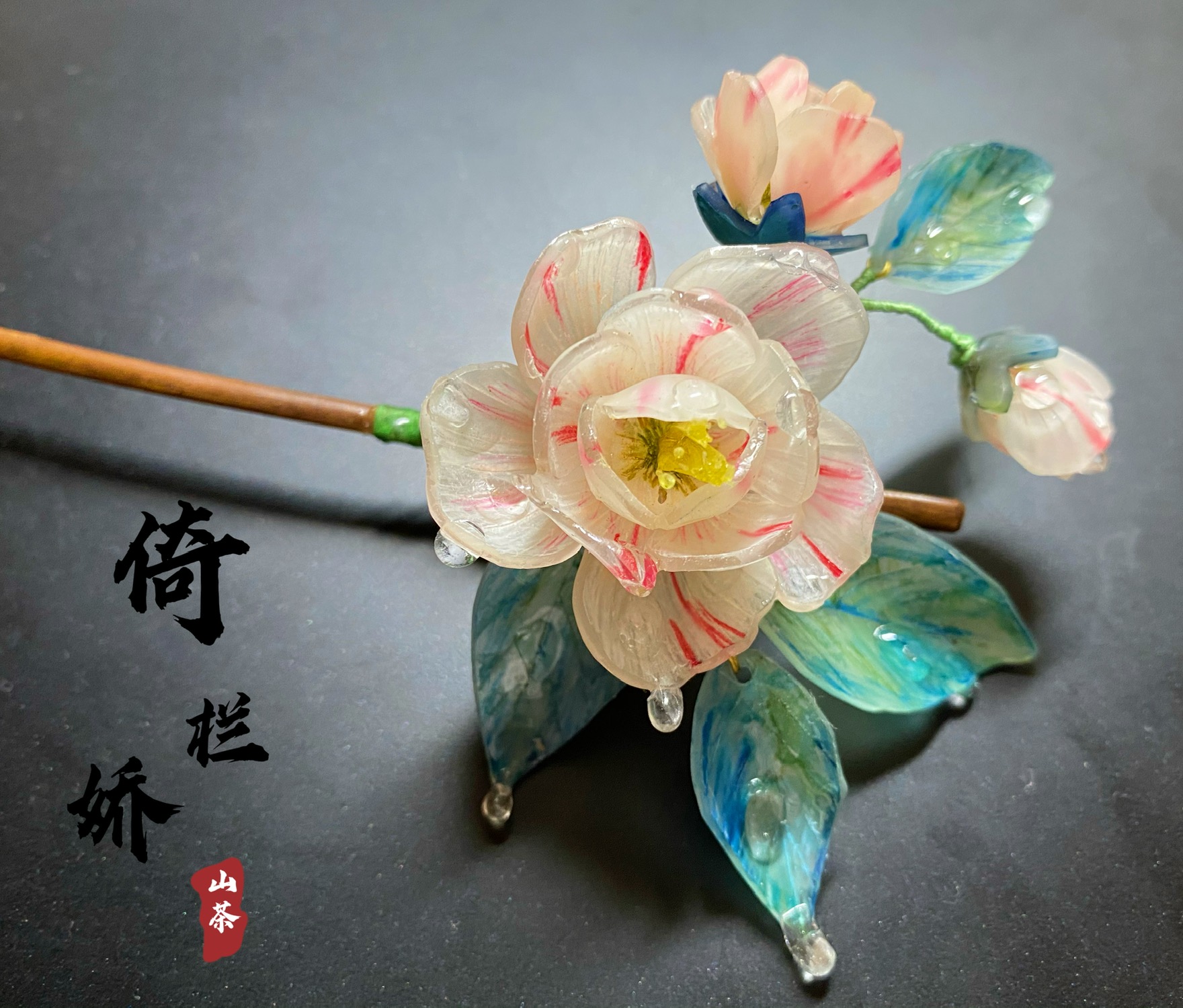 竹枝发簪系列——山茶花倚栏娇
