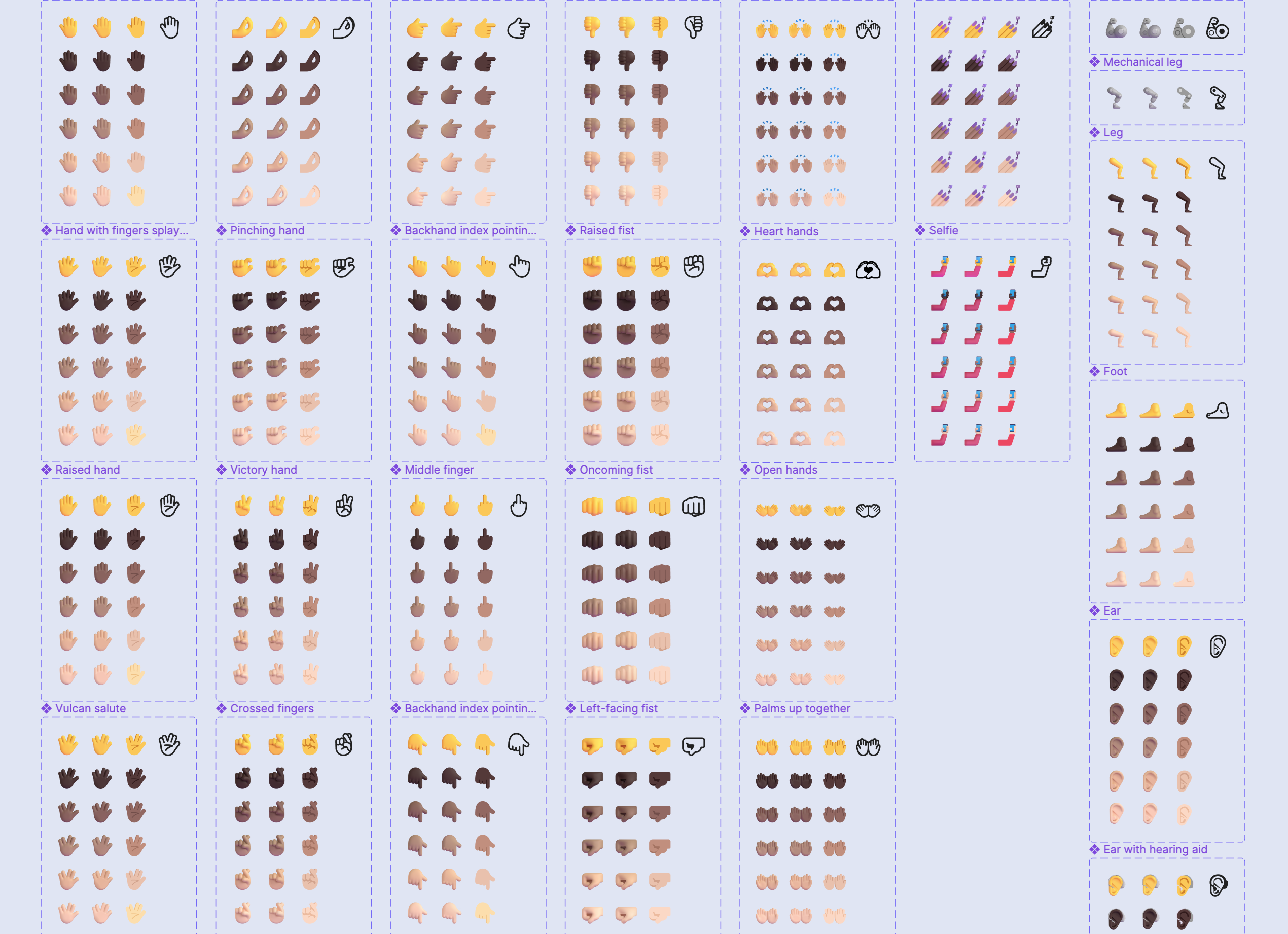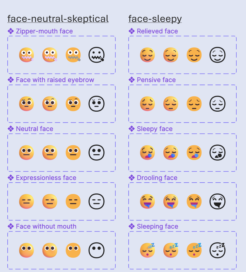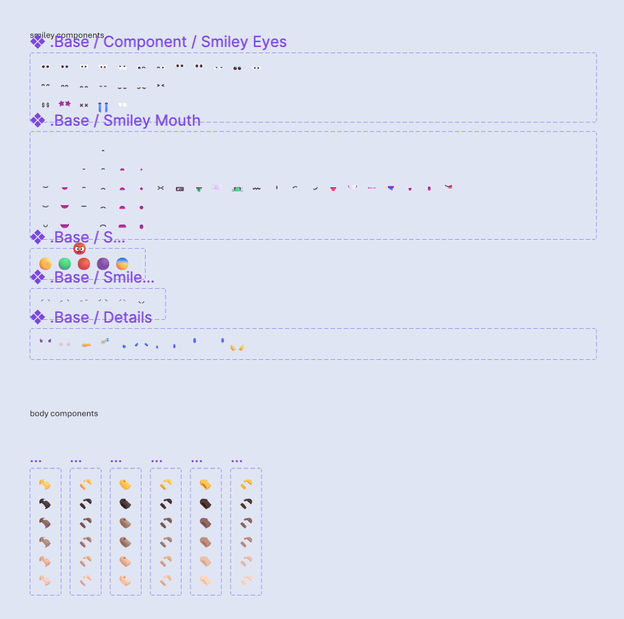 Figma 文件中贴心的提供了表情的基础组件,可以自己组合出不同效果的 「Emoji」了。