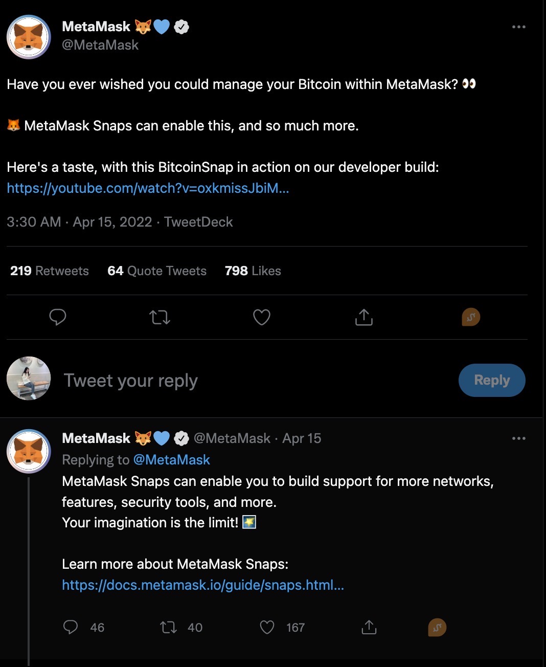 Snap可以向MetaMask添加新的API,或对不同区块链协议的支持。