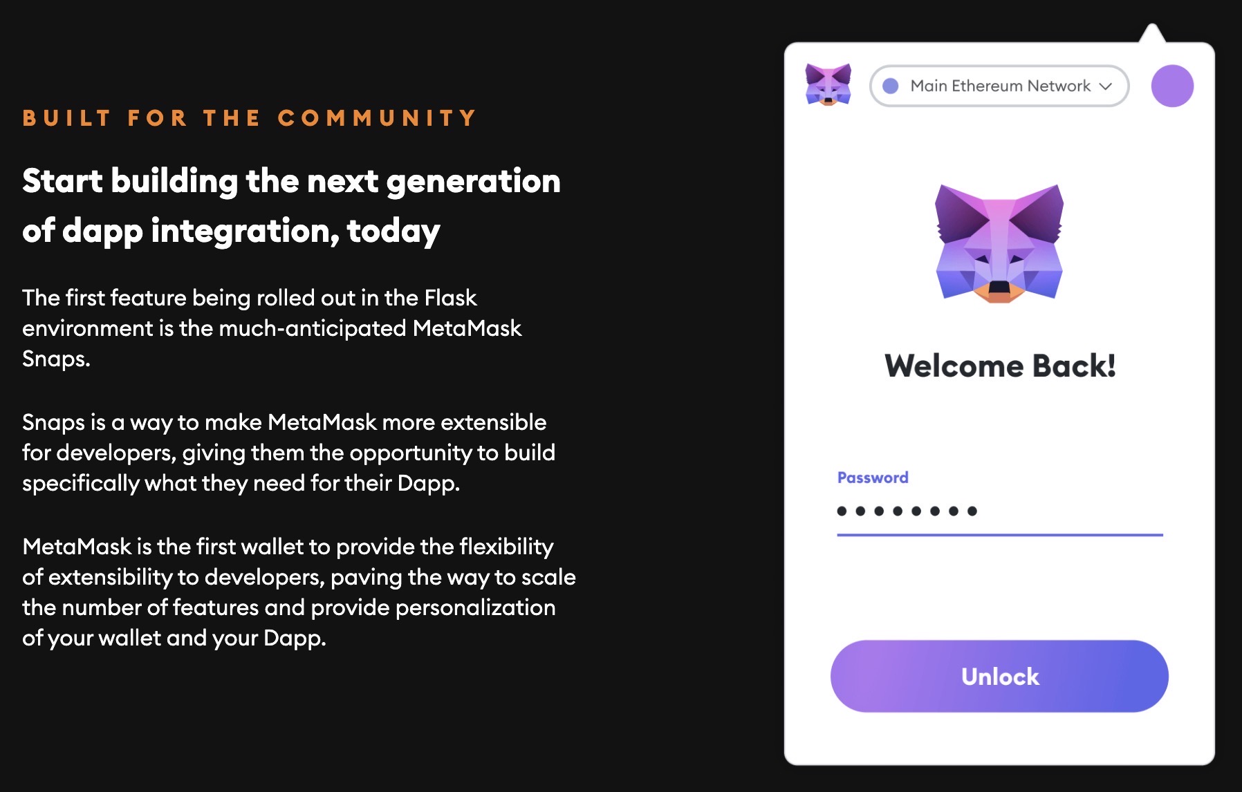 Metamask在2020年就推出了metamask snaps,它提供了一套工具和平台可由开发者自由拓展metamask的功能🧩,且不需要向metamask在内的任何一方申请许可就可以运行,这些生长在上面的Dapp在这里统一称之为snap。