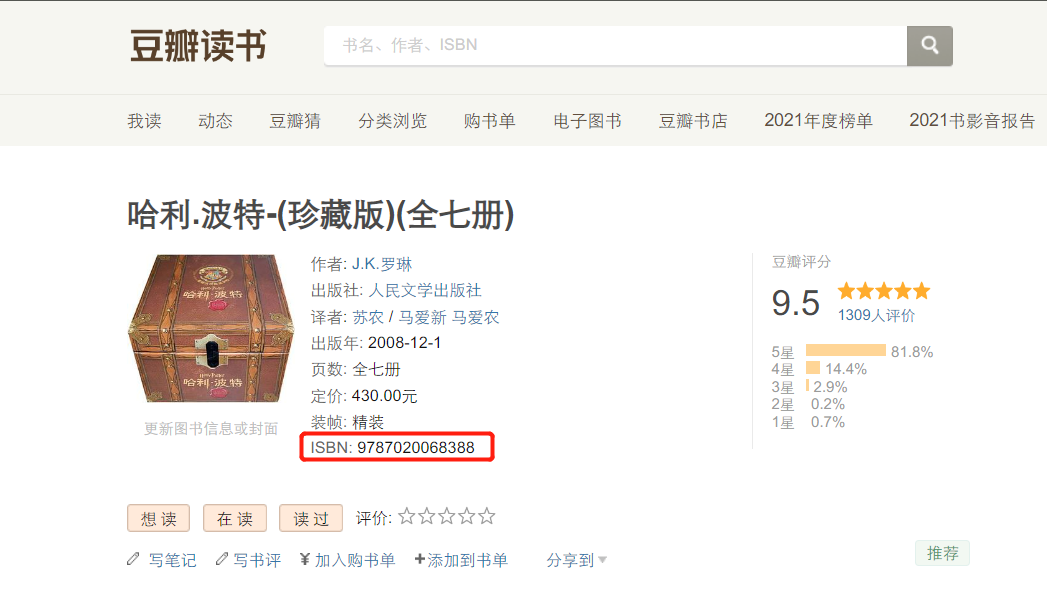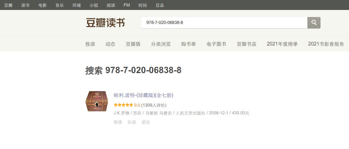 然后将完整的编号978-7-020-06838-8 去豆瓣搜索,