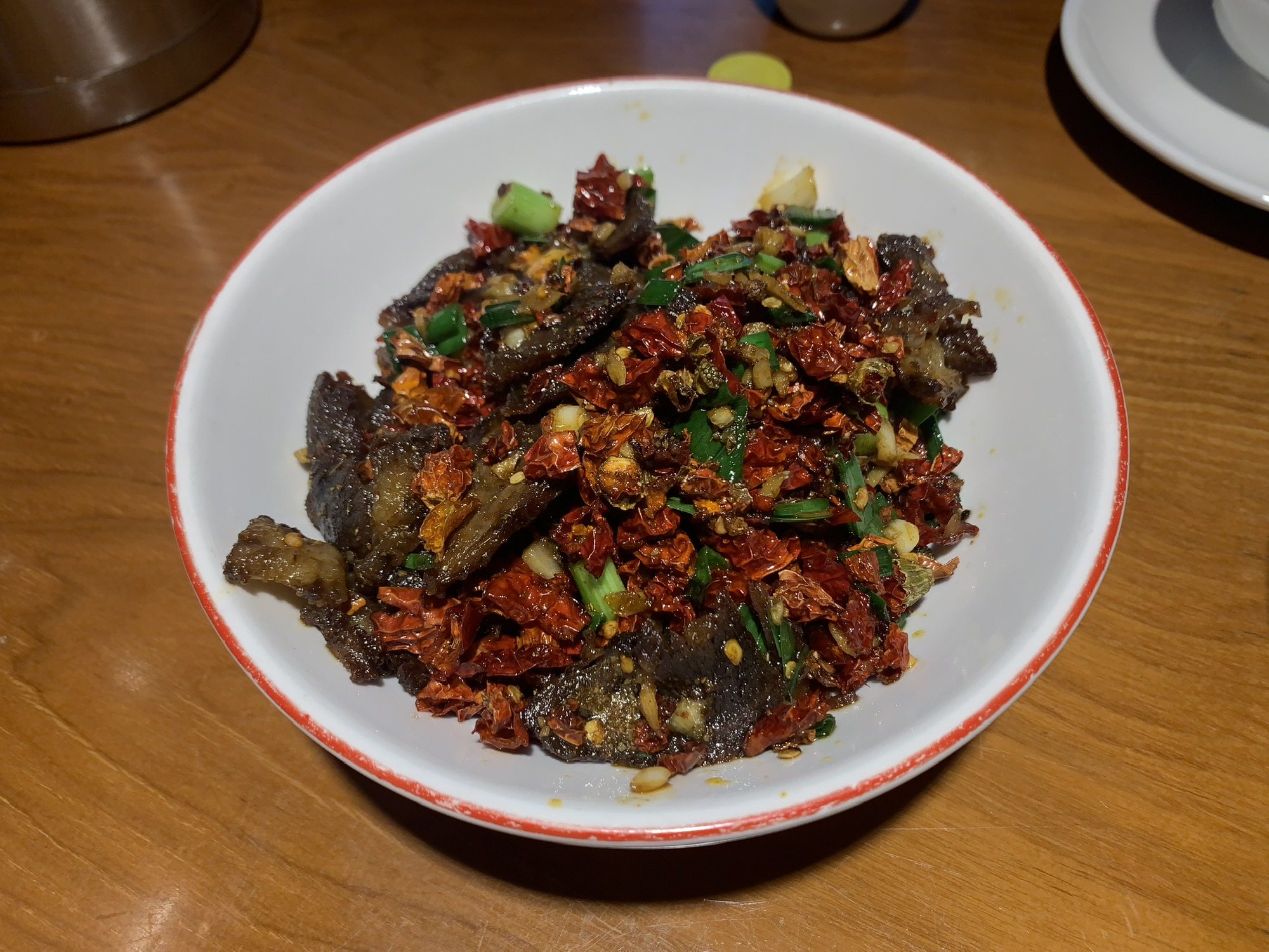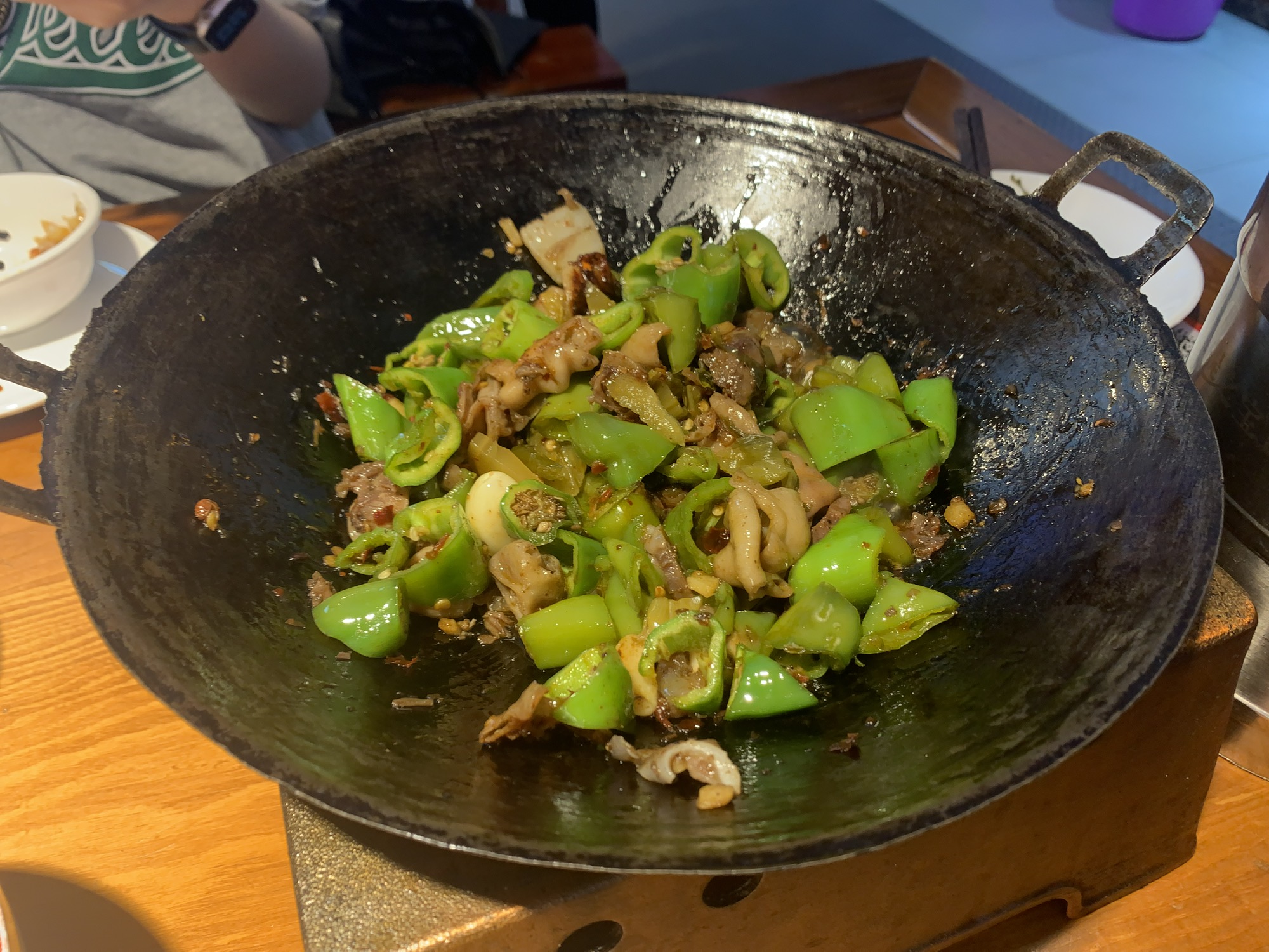 张氏父子一上来就觉得对味,就像之前婉莹节目中介绍的,全都是碎碎炒碎碎,招牌的干锅肥肠吃得我们大汗淋漓停不下来。(图3、4、5、6)