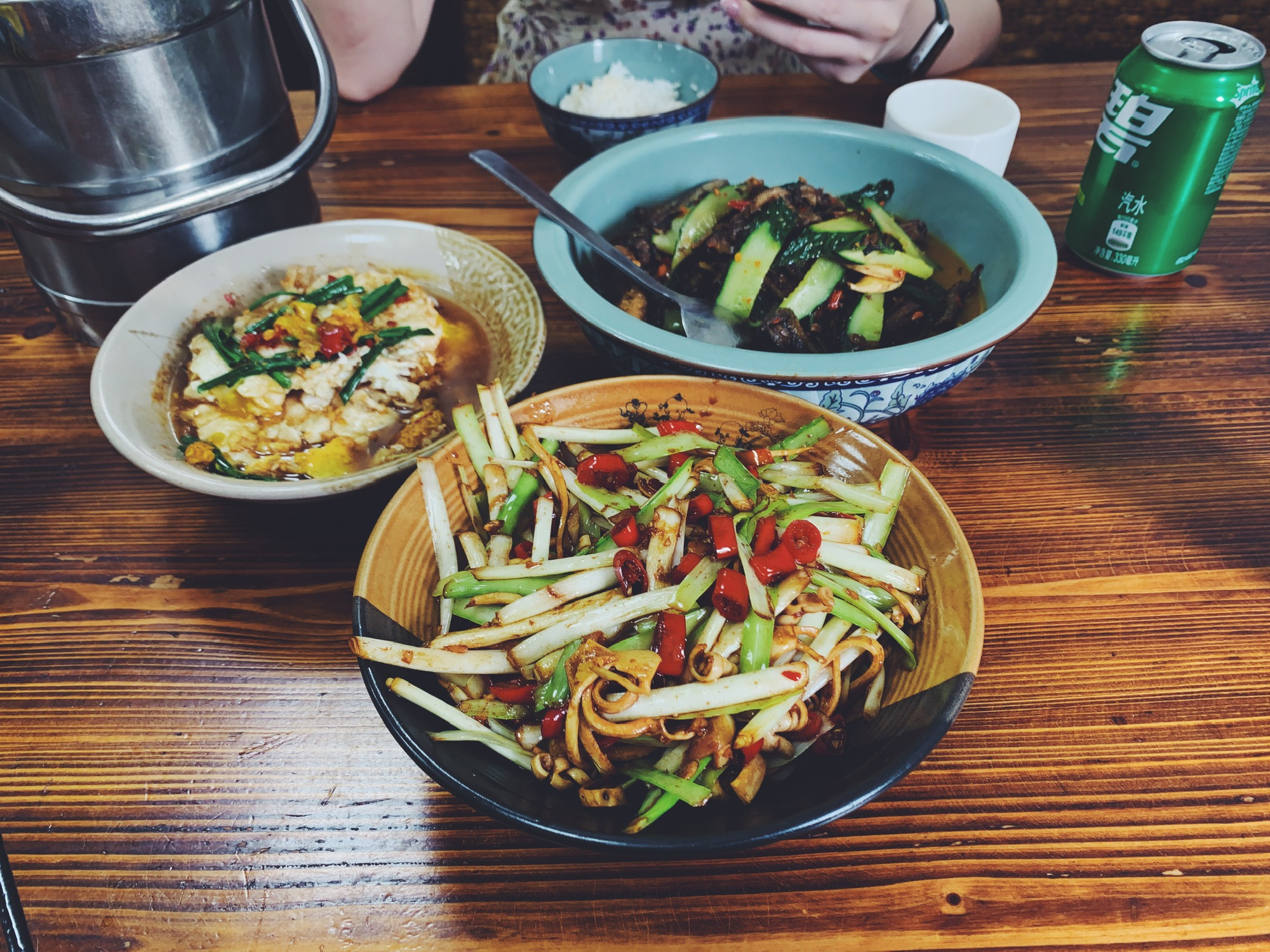 李久其家是最失望的,有点大杂烩,居然还有不少粤菜,反正就是当地菜普通,非当地菜一言难尽(图2),像是一个景区餐厅(白沙液古街店)。