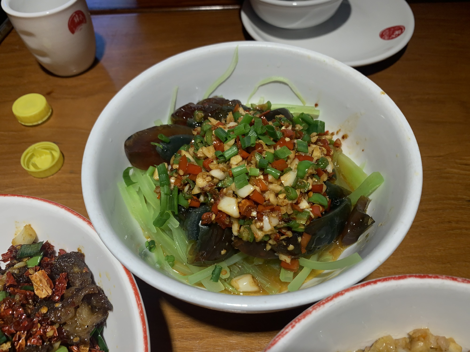 辉胖子在当地很受欢迎,店面极难找,但中午11点半开始就满座。可能和点菜有关,这次整体不是太满意,生炒黄喉很出彩,特别下饭,可是招牌的醋炒蛋就觉得一般(图1)。