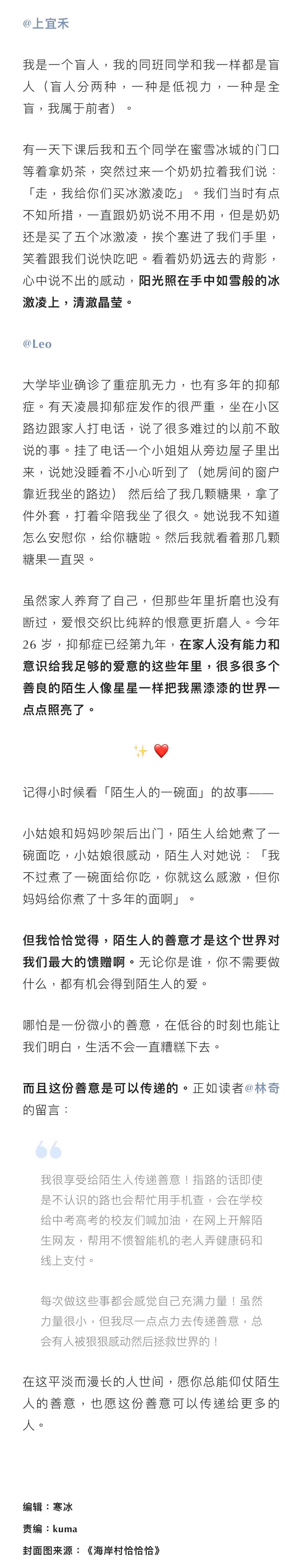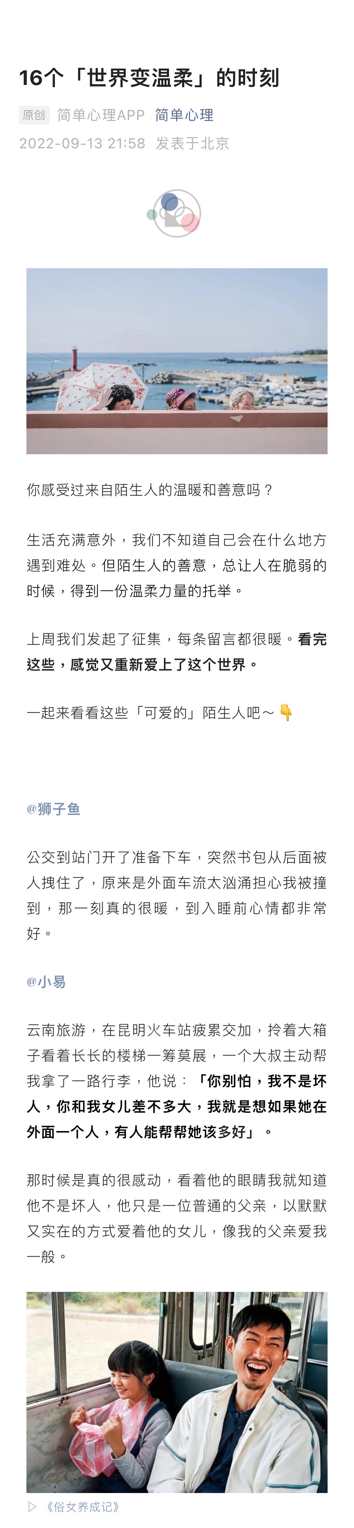 我们收集了许多简心er与他们遇到的陌生人的故事,每条都很暖。看完这些,感觉又重新爱上了这个世界。一起来看看这些「可爱的」陌生人吧~
