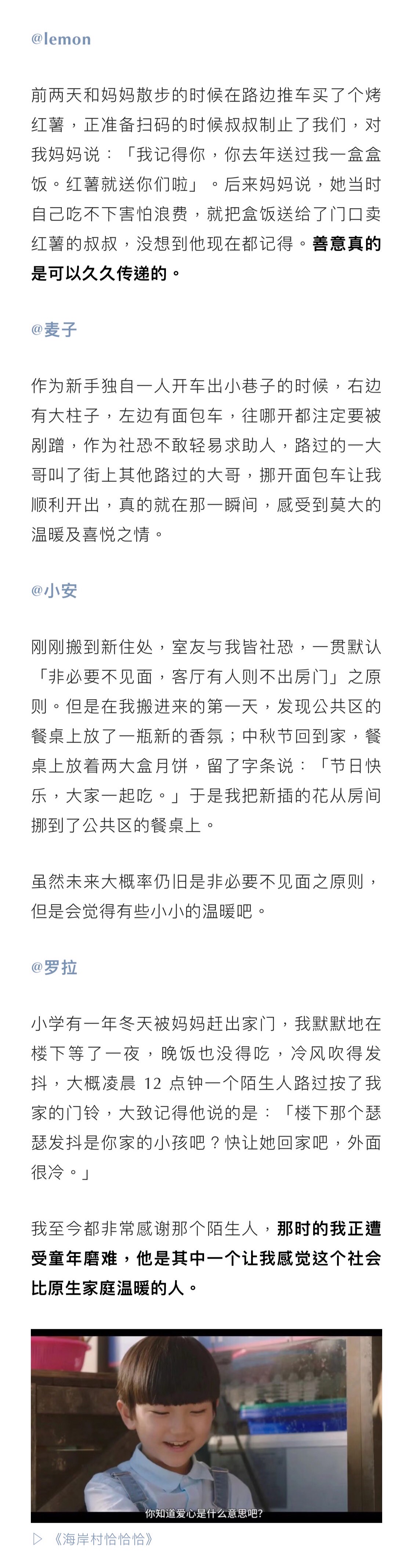 你感受过来自陌生人的温暖和善意吗?