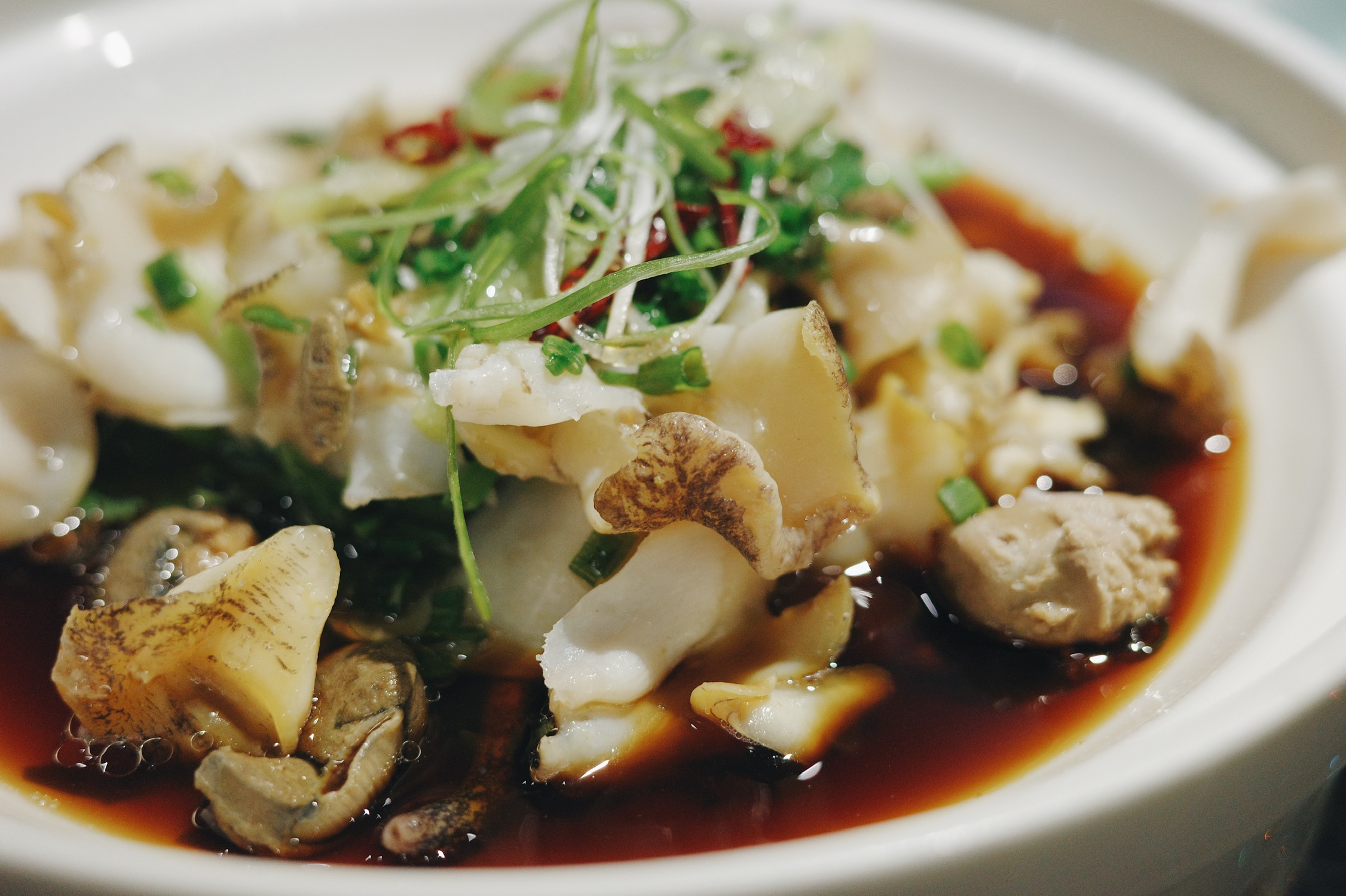 南通食材南通菜。栟茶蛏汤清蒸带鱼猫眼螺和八爪鱼都不错。小黄鱼全场最佳,鲜嫩的鱼肉蘸些酱汁,吃完抹抹嘴巴,意犹未尽。韭菜黄鱼炒饭做得蓬松十足,再kuai一勺海参豆腐盖在炒饭上,浓烈裹挟温润,熨帖至极。