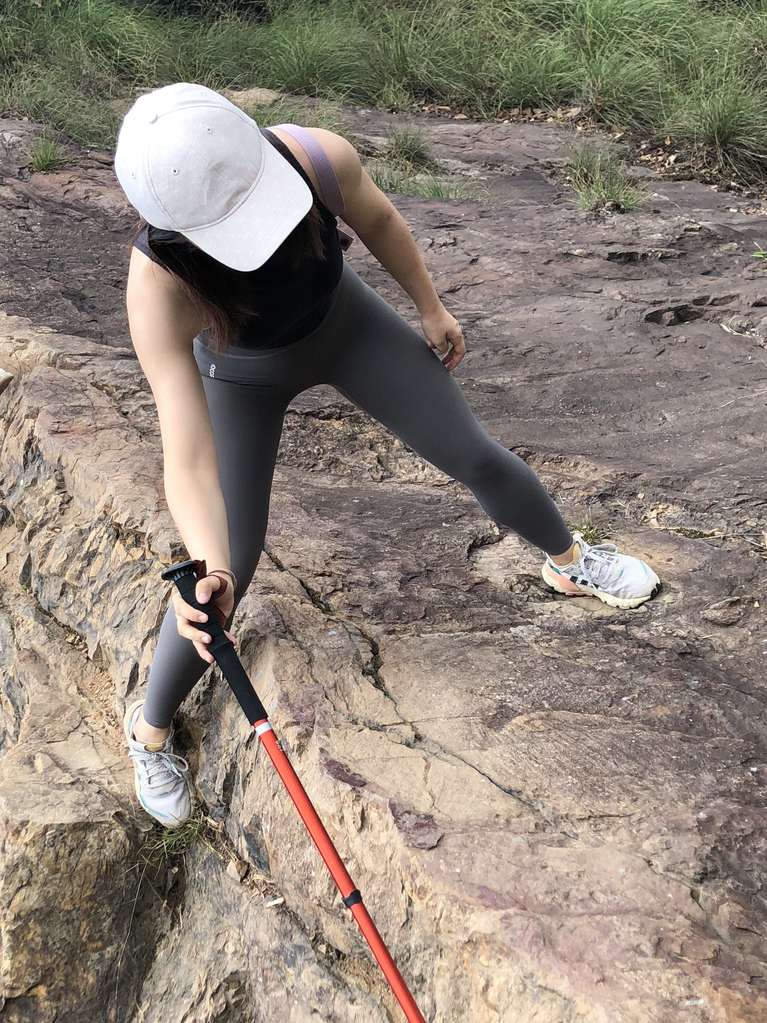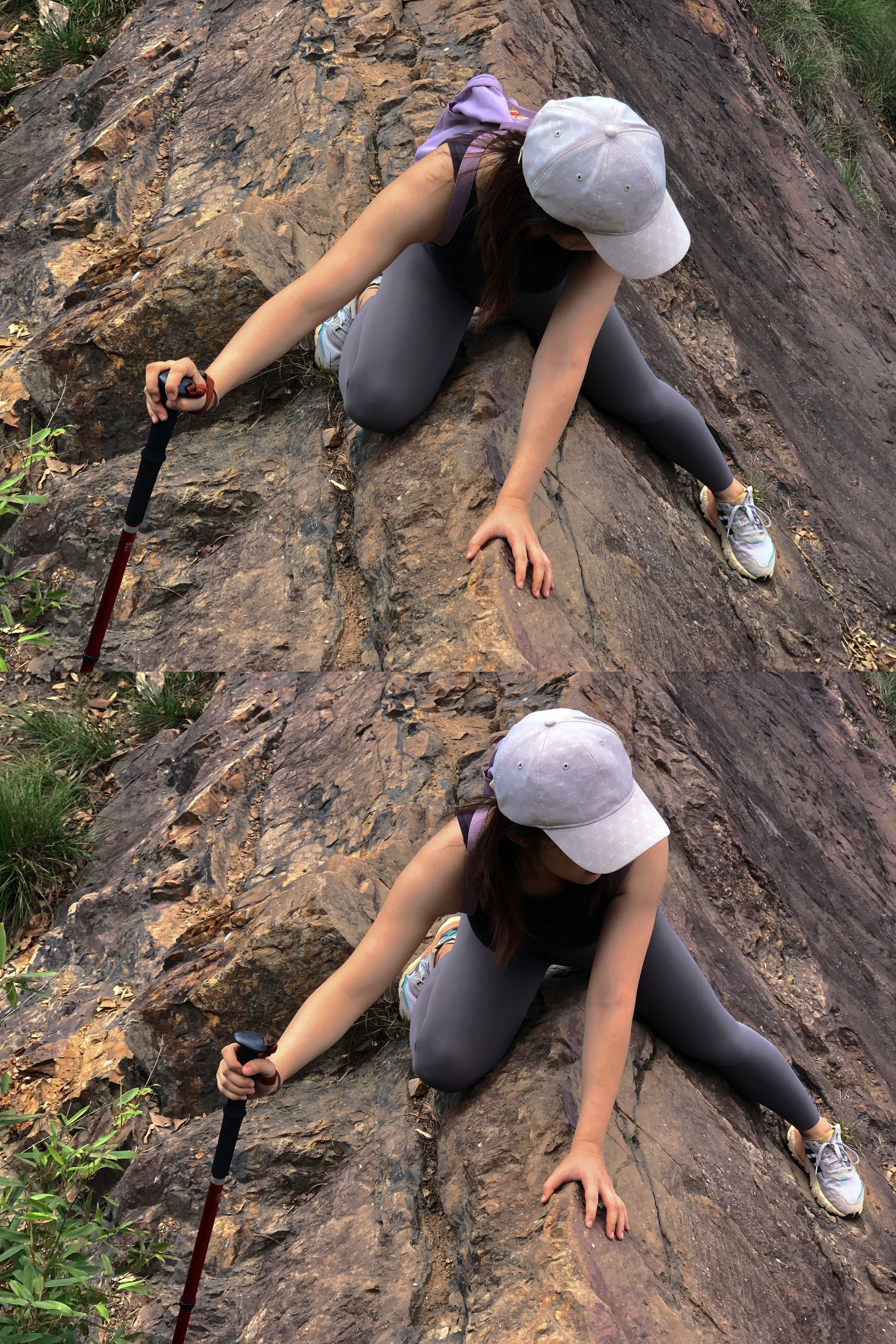 🚶穿抓地力强防滑的鞋!带登山杖!下坡较多松软的沙土和落叶,容易打滑(图鞋为错误示范
