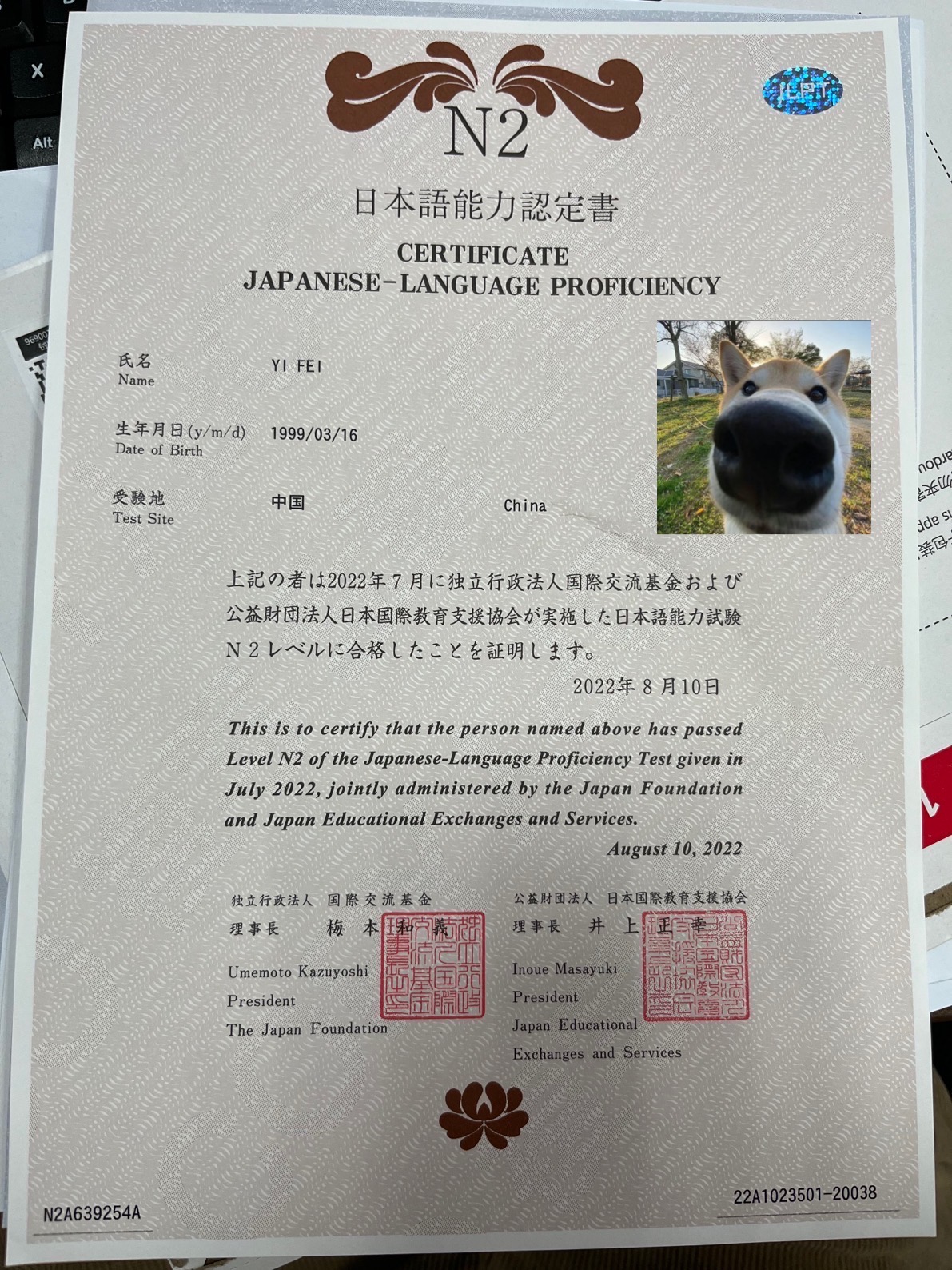 芜湖~以后也是有N2证书的人了😎