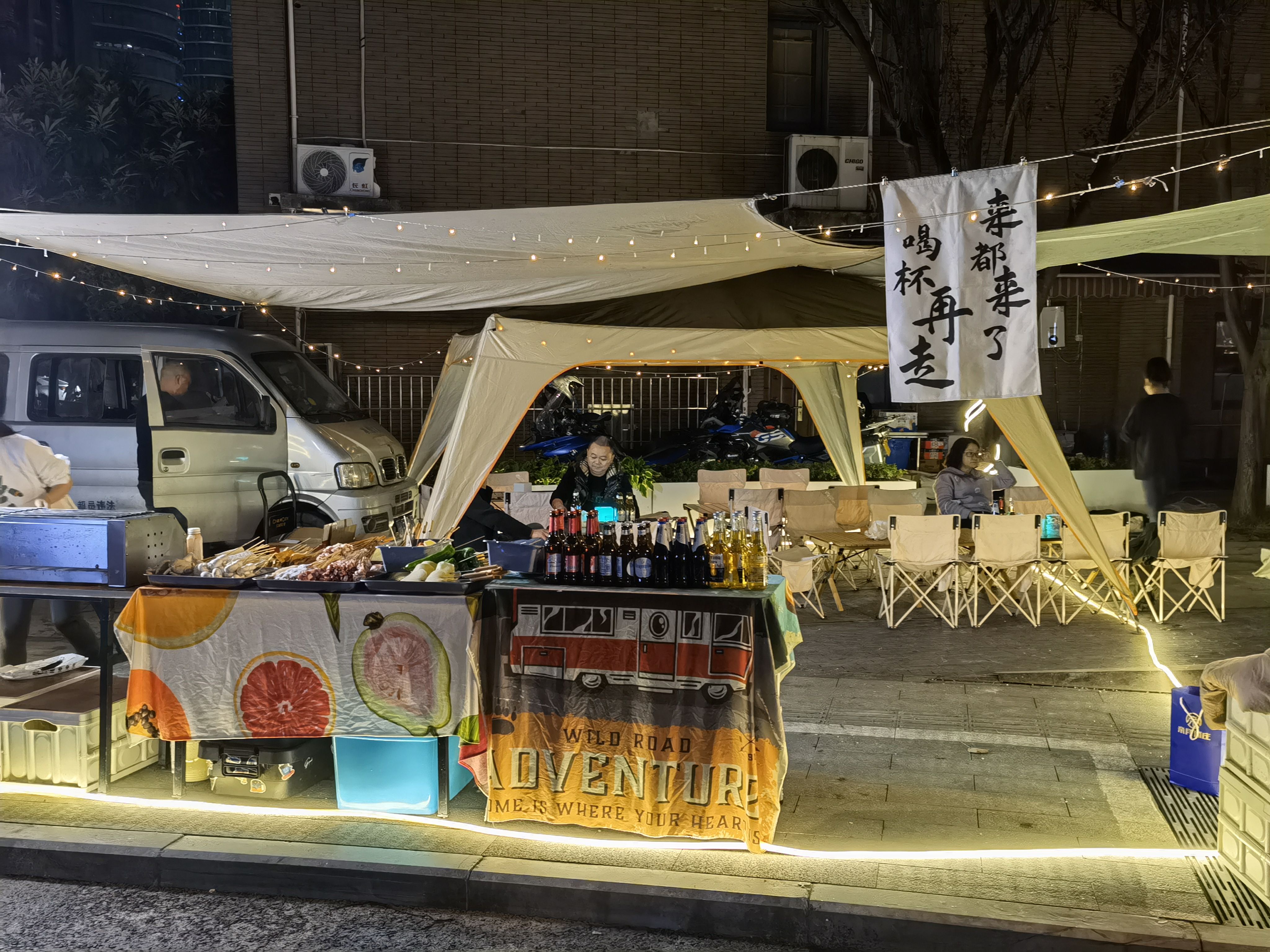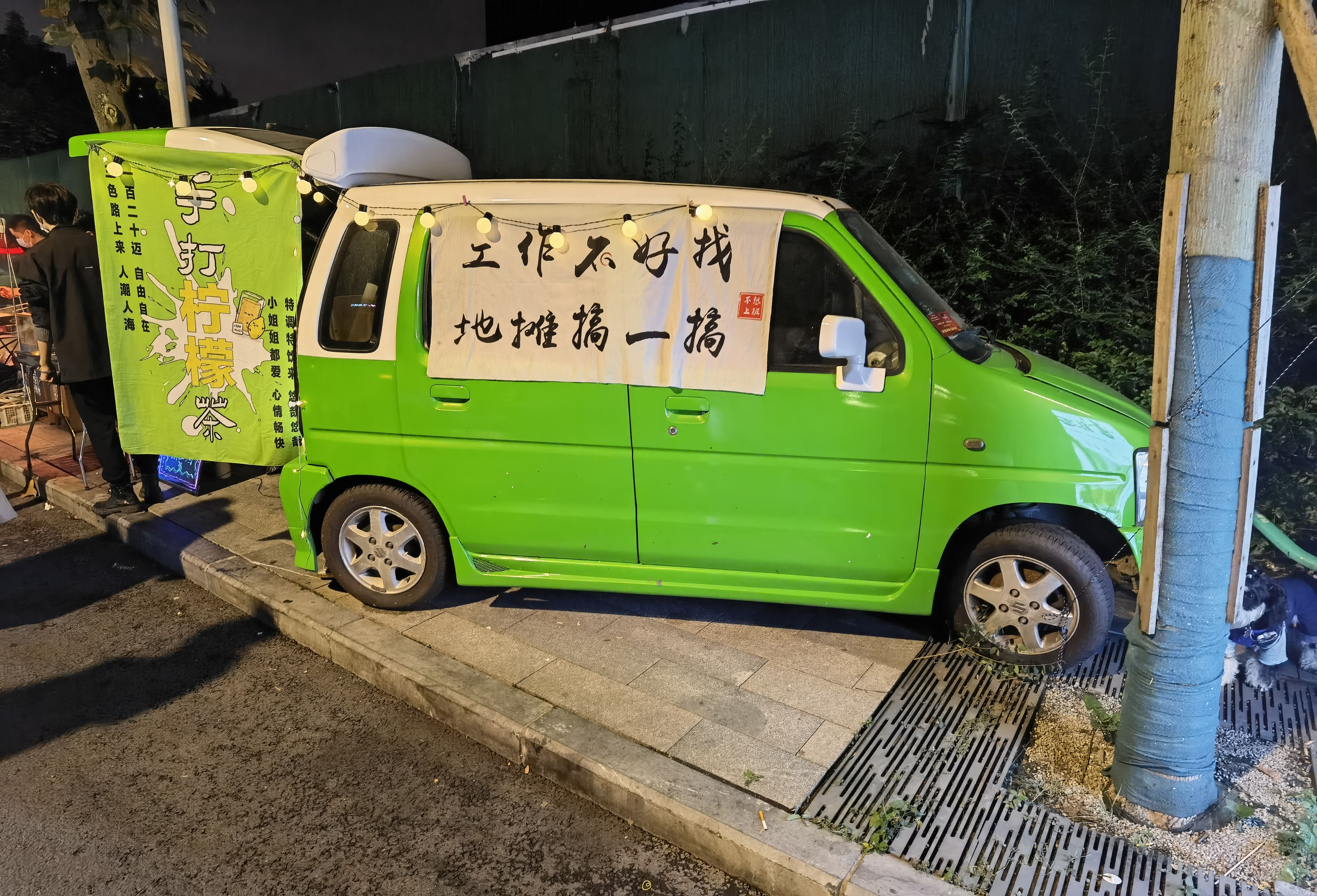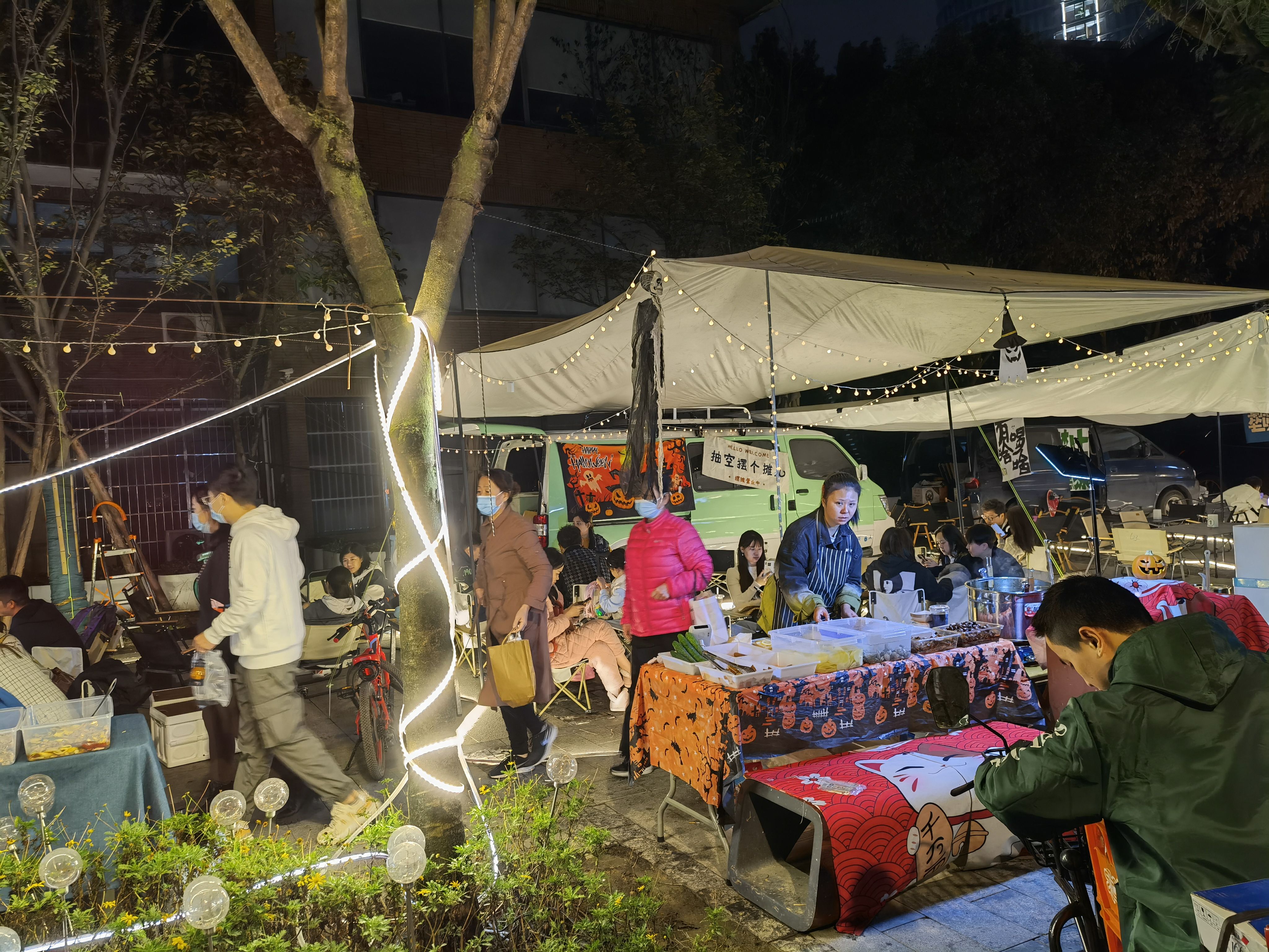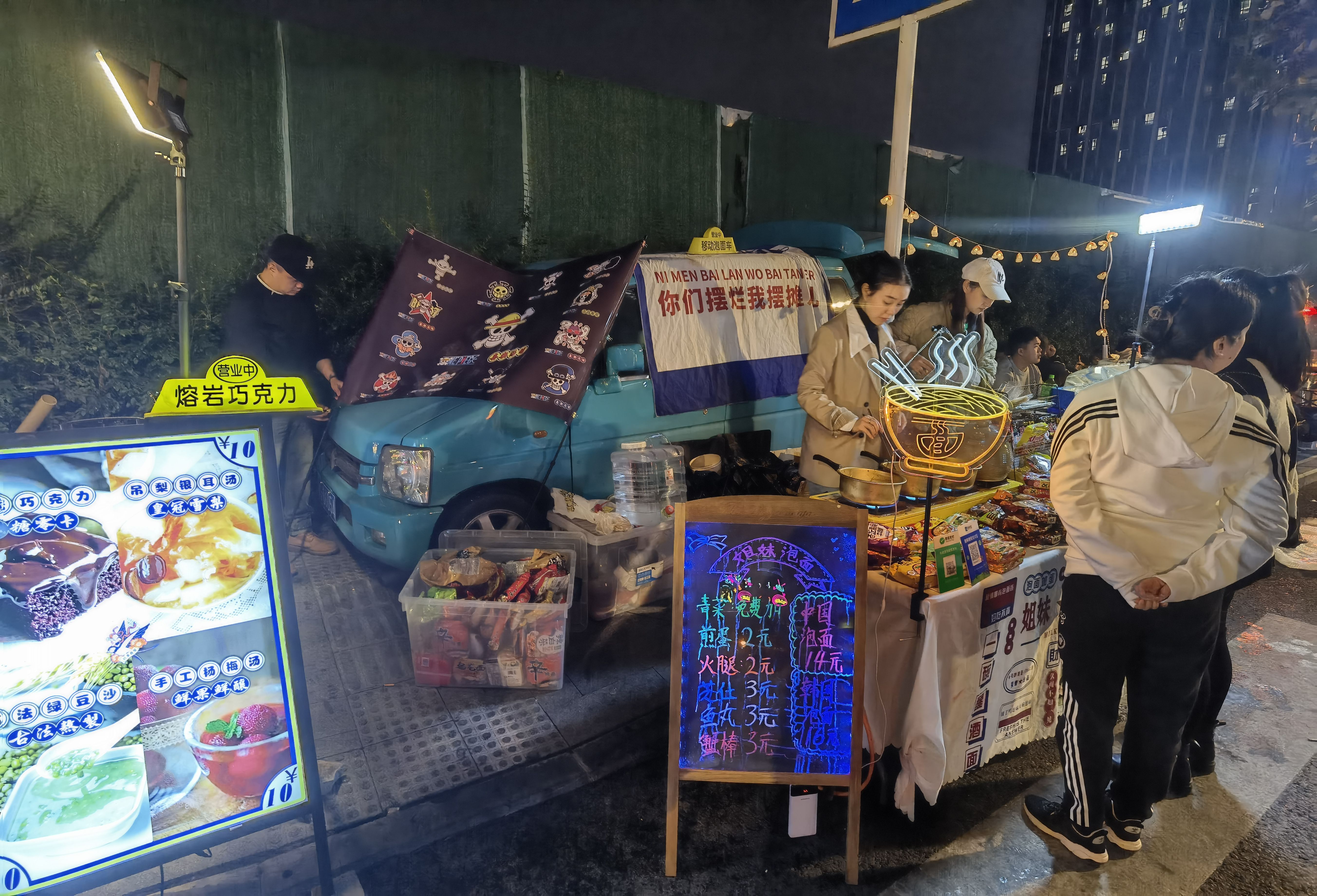 最近很火的三色路夜市,挤满了咖酒串和泡面、提拉米苏。中产们的想象力不太行啊。没想到的是居然偶遇了某位明星。