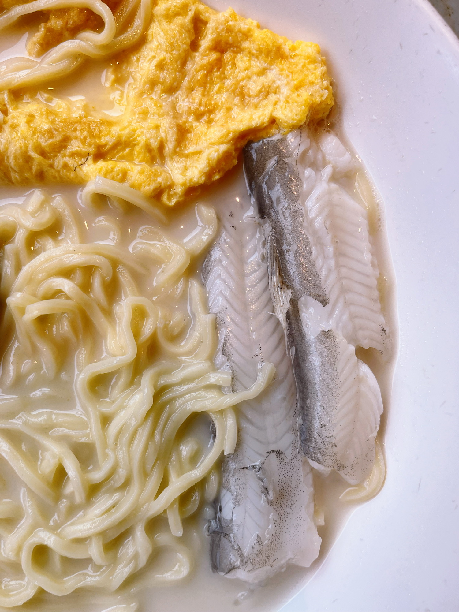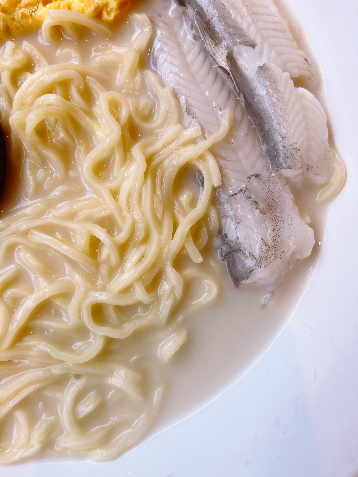 上海黄鱼面几大代表:淮海路的顶特勒、思南路阿娘、斜土路明呈都有这种奶白鱼汤