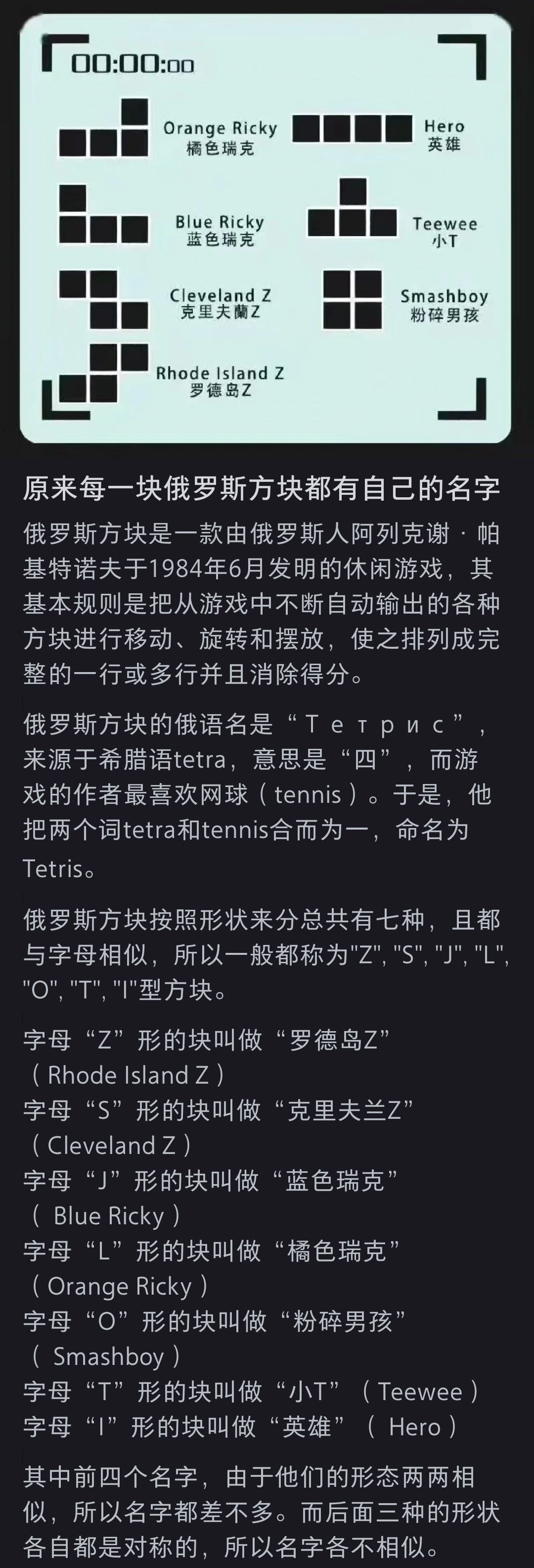 俄罗斯方块是有名字的!