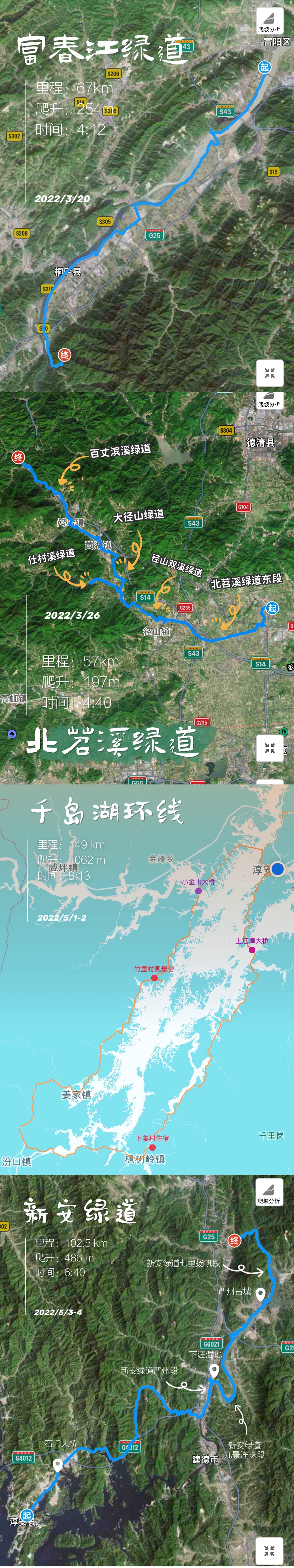 杭州骑行的下篇终于整理好了,富春江绿道、北苕溪绿道、千岛湖环线和新安江绿道
