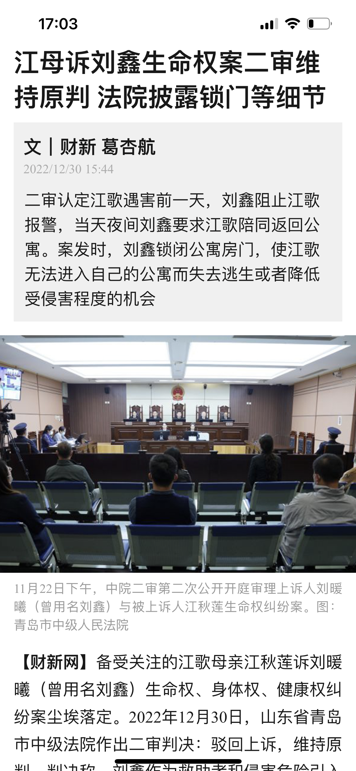 江歌案终于换来法院证实细节:1)刘鑫反锁房门阻止江歌逃生2)找江歌陪同躲避陈世峰3)刘鑫不让江歌报警4)陈世峰蓄意伤害的是刘鑫5)刘鑫知道门外受伤未有救助。