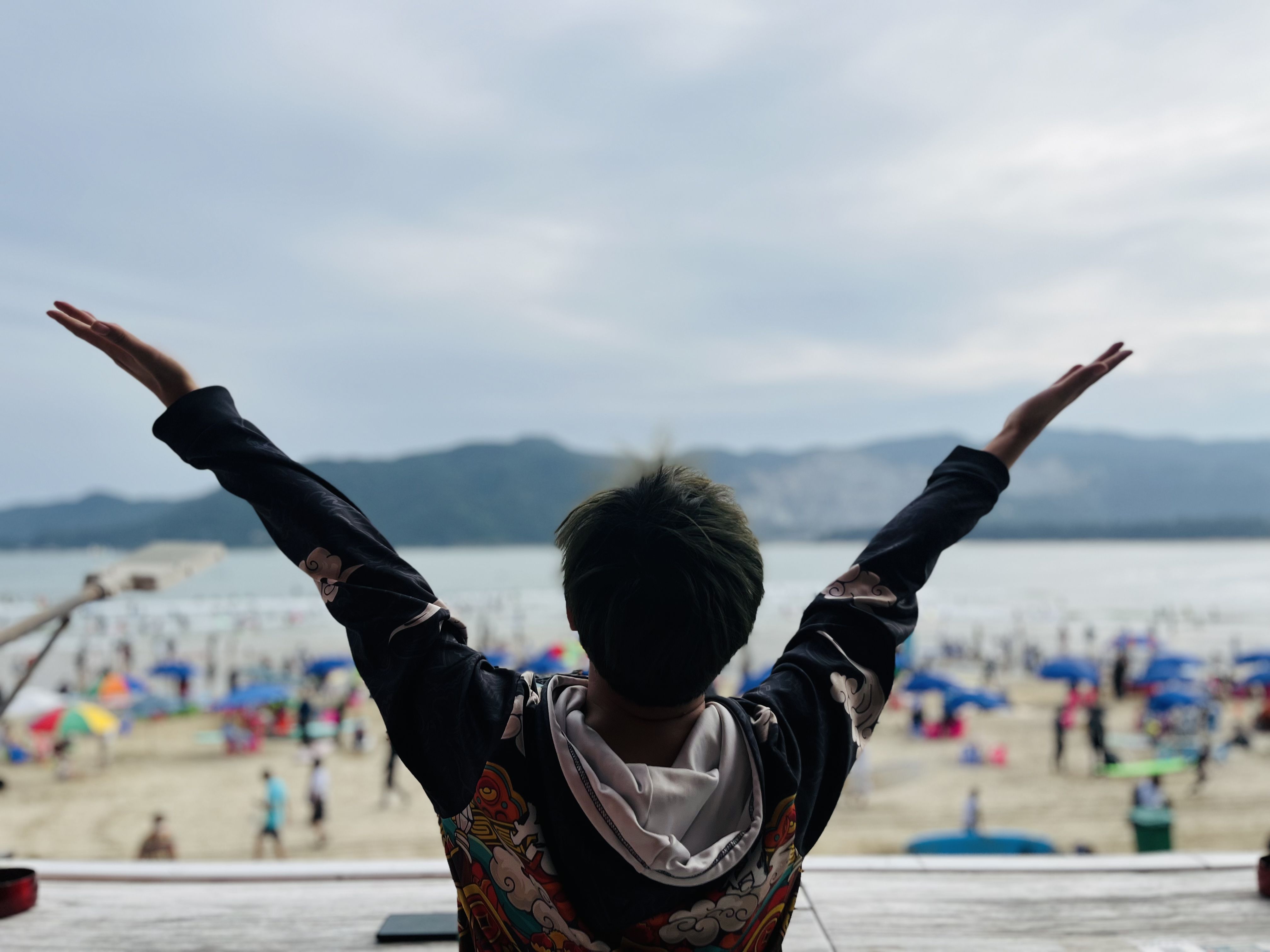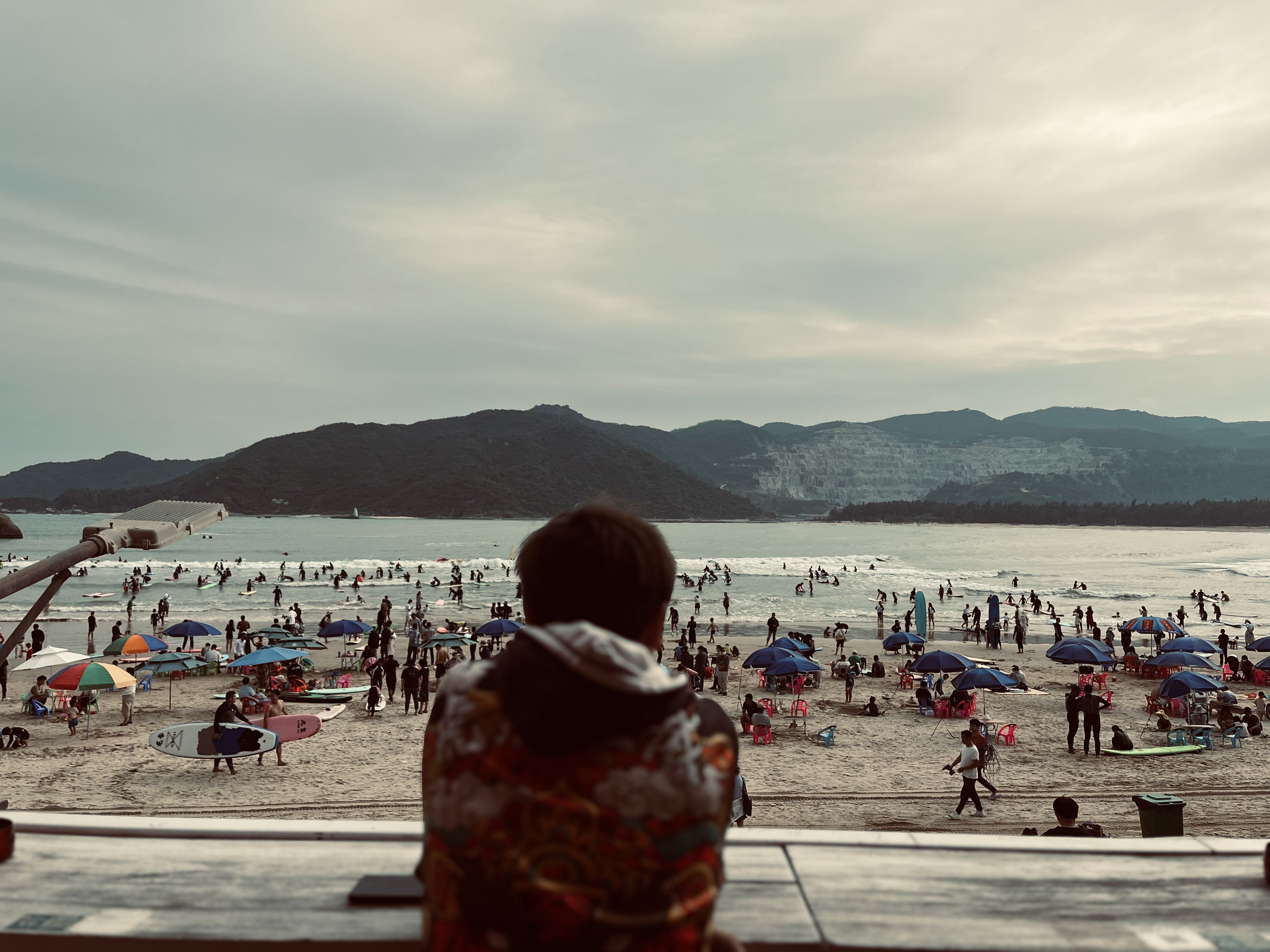 冬季的海南一般20-24度,有日照的感觉会像内陆26℃左右,下午4点之前海平面上人头攒动,温度很合适。下午4点左右开始变冷,普通游客一走,冲浪赛道就开阔多了,能看见更多爱好者驾驭海浪。