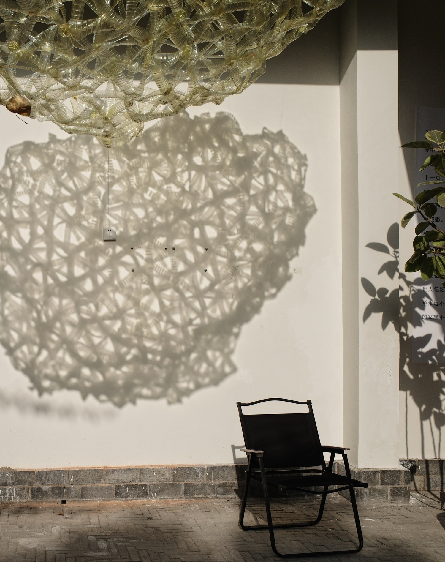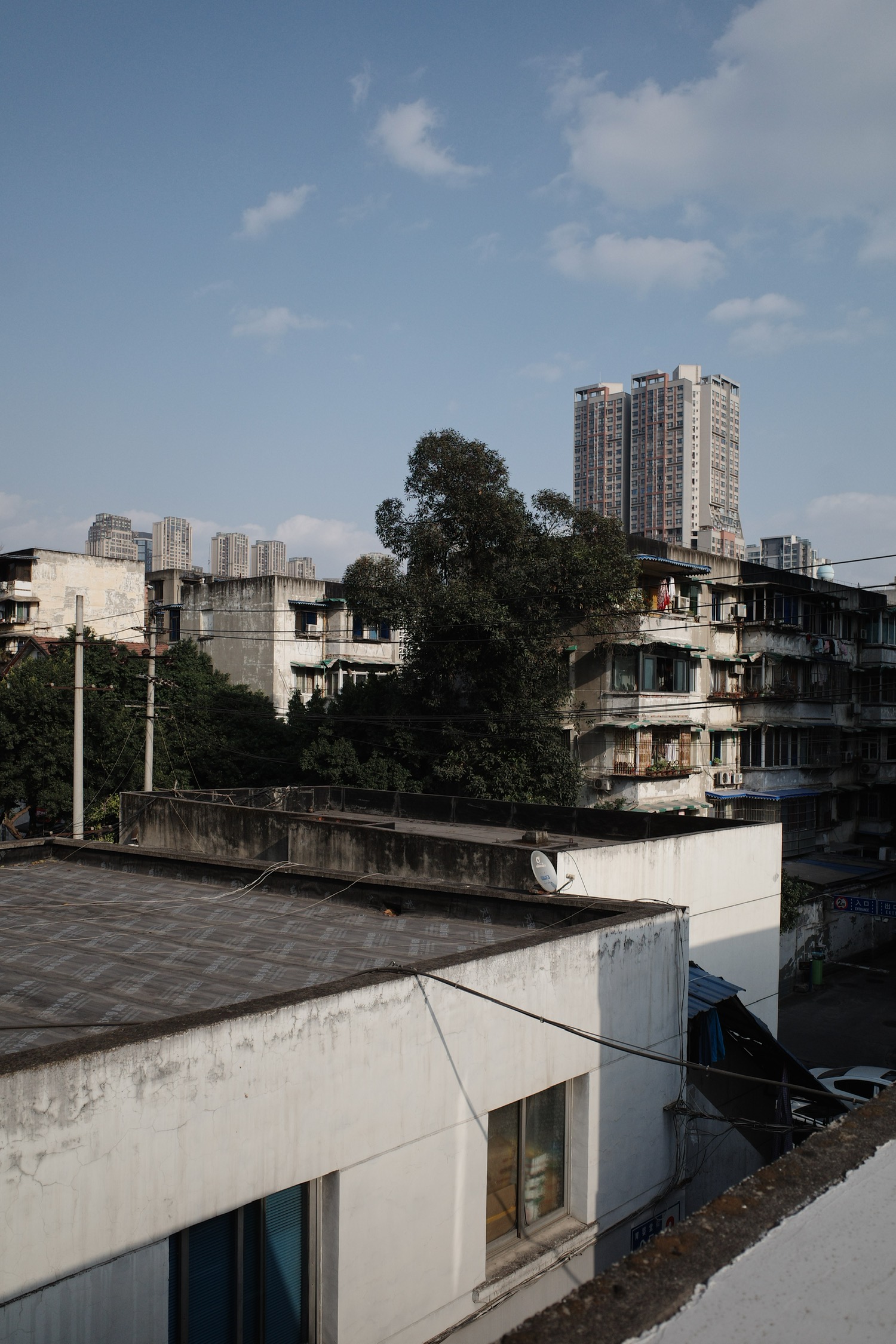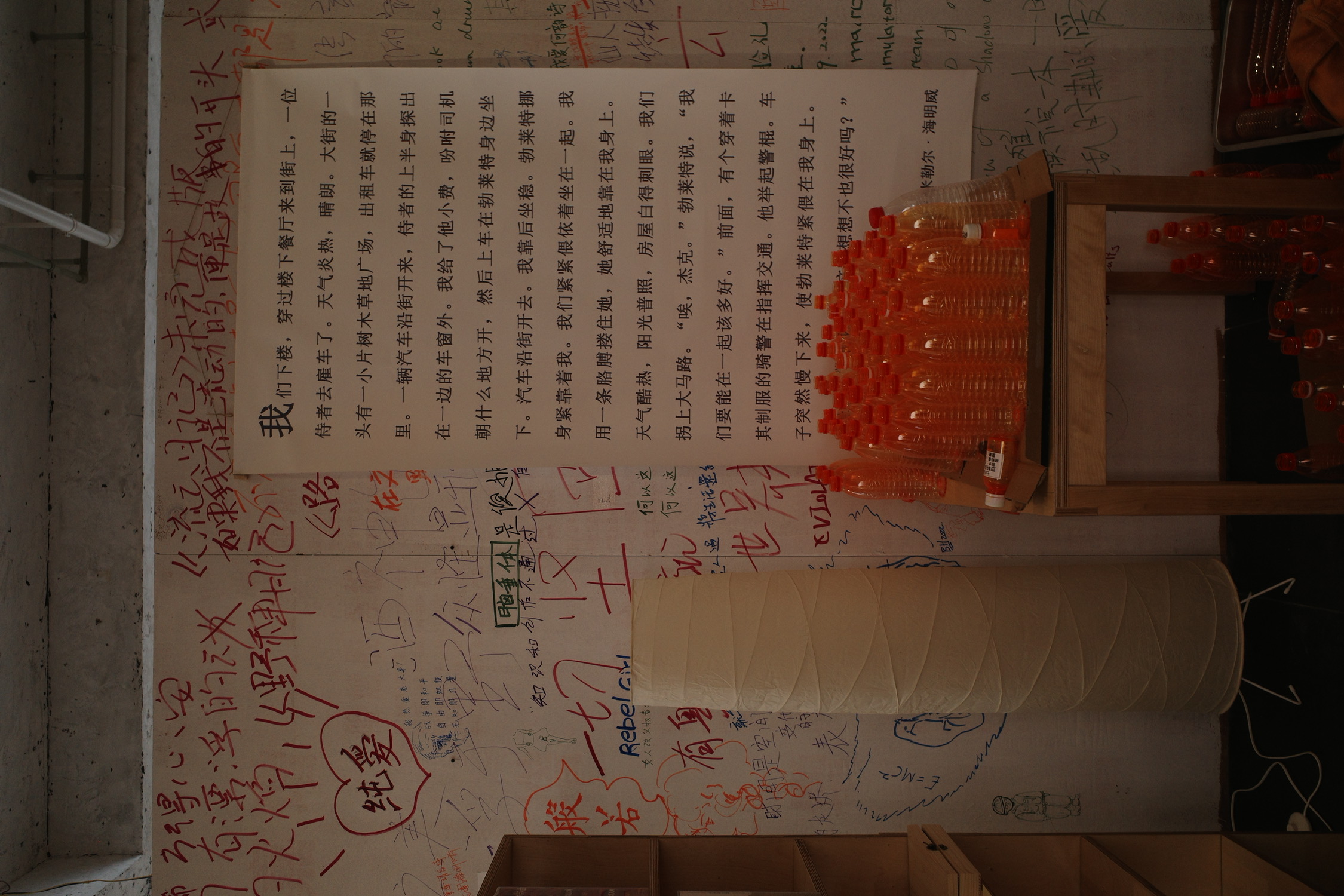 往三楼去,是一大片屋顶天台。两个女孩子在晒太阳。能在成都冬天,晒到这样暖和和的太阳是很珍贵的。在太阳下边摆龙门阵边织毛衣,简直奢侈享受。大浮我没有去过,听说常常有氛围极好的诗会,会放映露天电影。看到这个阳台的时候,很自然地想象这个天台的以后,真是羡慕。
