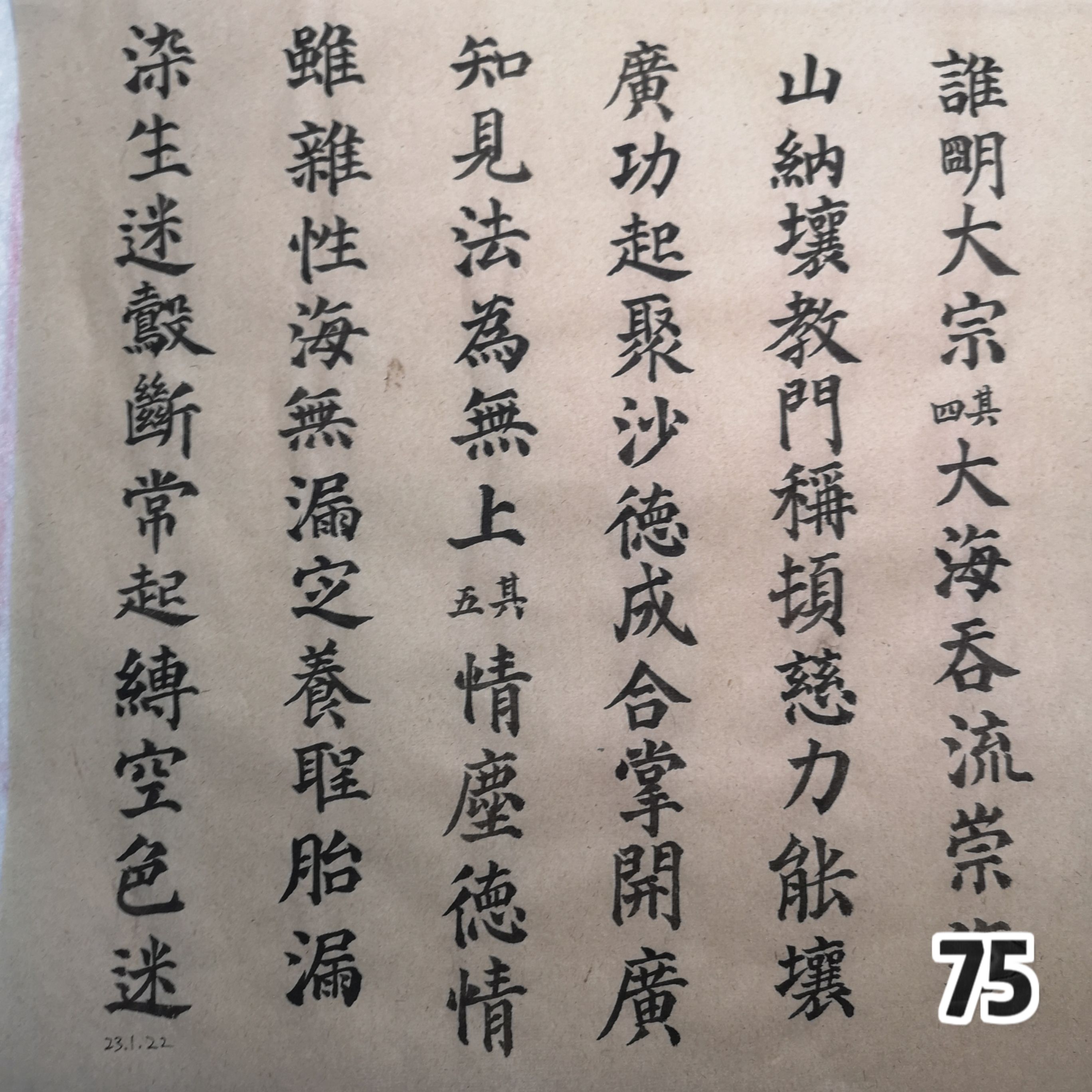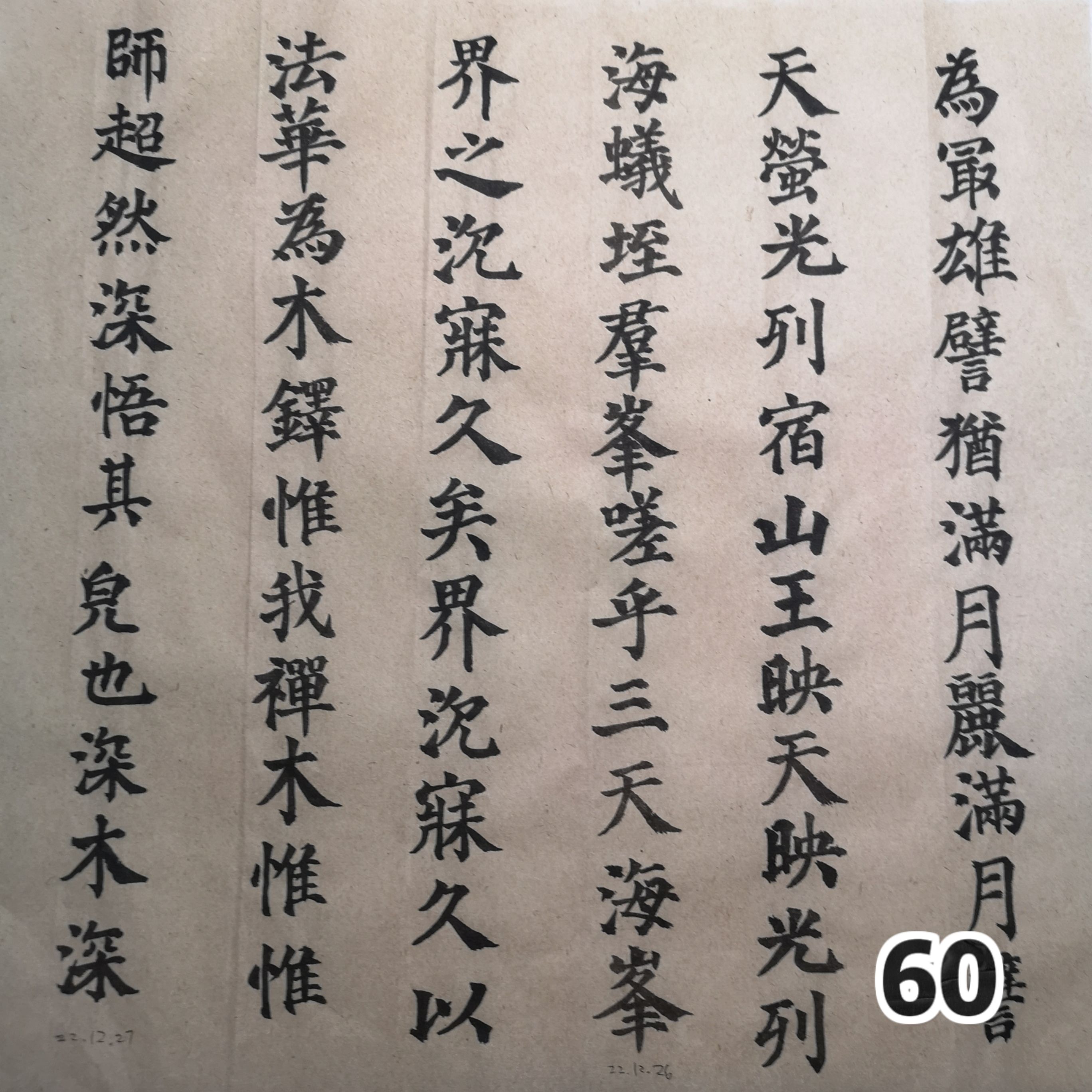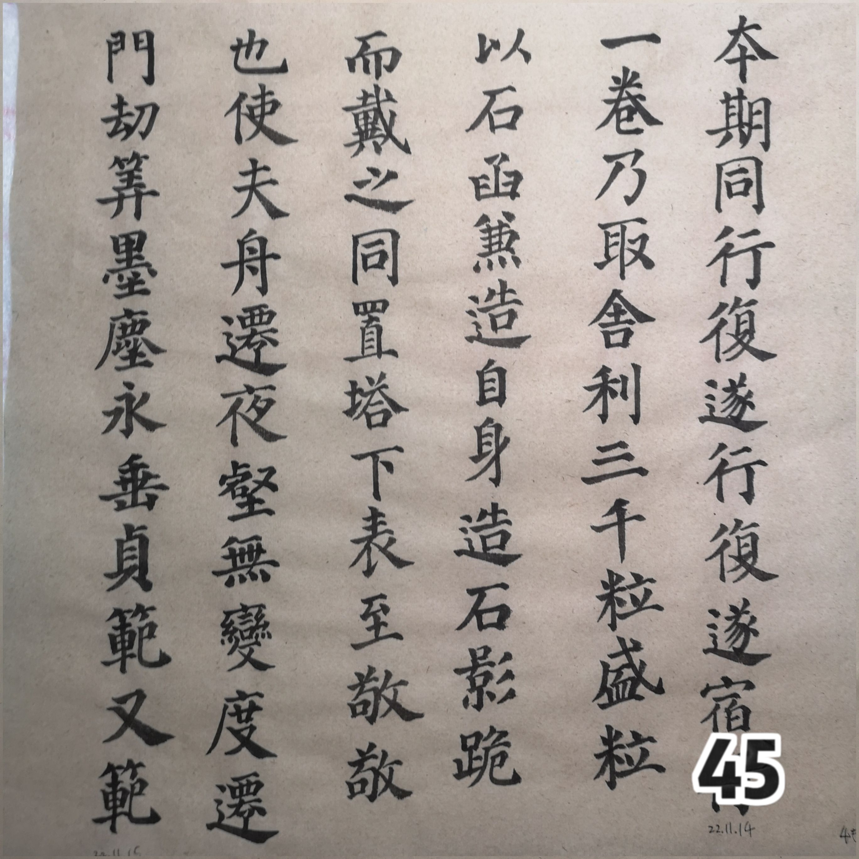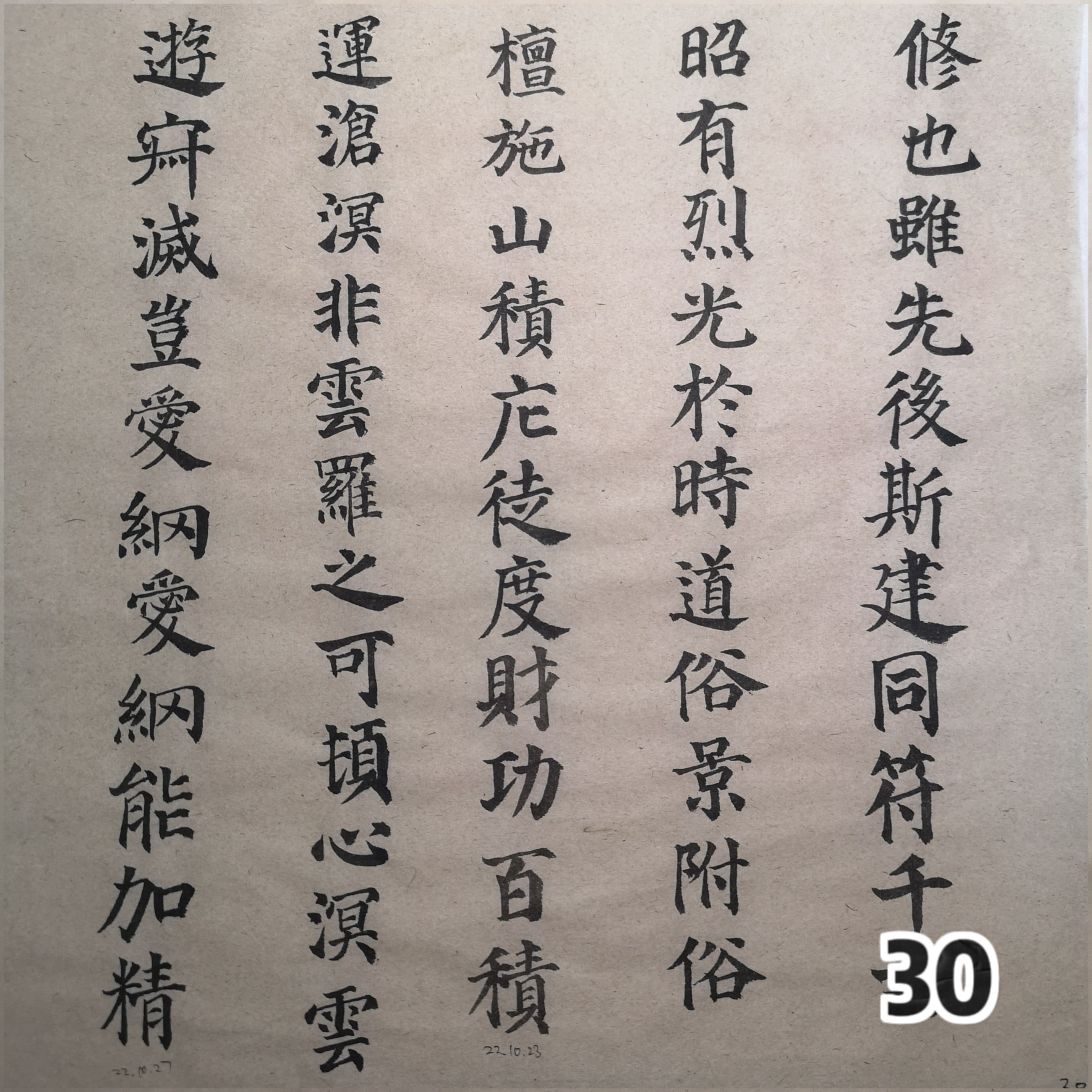 人生第一遍多宝塔碑纪念🖌。9月6日至今共140日,总练习时长约100小时,写了78页。最大的收获是给家父理发,推寸头手稳了许多;不过日常书写依然难看。总的结论是练字真没什么用处,就算是为日后出家或者退休做准备吧。
