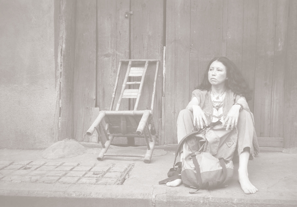 关于三毛的照片,有一张想必所有人都见过,她坐在地上,背靠着一个由几块木板拼成的门,双腿曲立着,手就那么随意地搭在上面,眼睛右斜上方看向天空,眼神坚定。