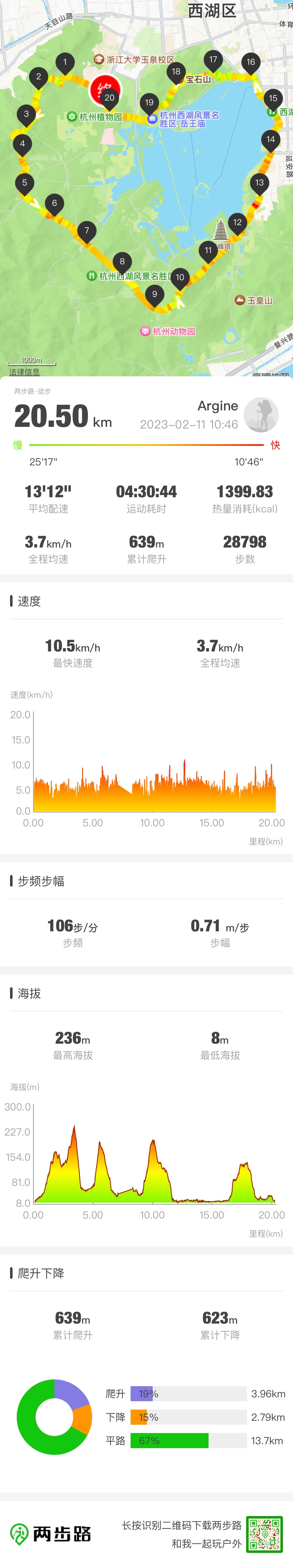 昨天徒步21公里走了西湖爱心线,今天走路上哪里都痛,上下楼梯在内心都痛苦嚎叫,脱鞋都费劲,啊,估计得疼三四天。