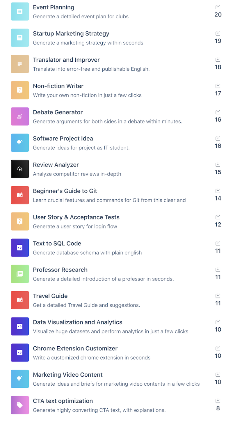 国外网站汇总了 245个chatgpt应用方向,可以参考看看,找找思路。