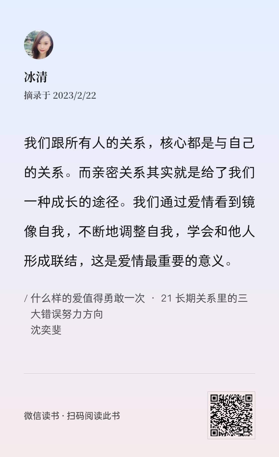 后续我也考虑再列一个书单,把亲密关系的学习在小伙伴中继续下去。时刻提点着、阅读着,慢慢让新神经元取代旧神经元,一个家庭关系的变化会带来一系列改变,相信我们这一群人的亲密关系会比上一代更好~