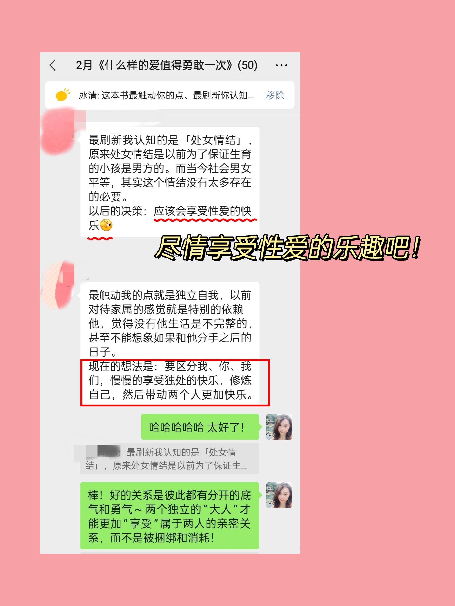 这本书也是本月核心读者群的共读书目,这一期的完成率超级高,还有小伙伴是情侣一起读的!