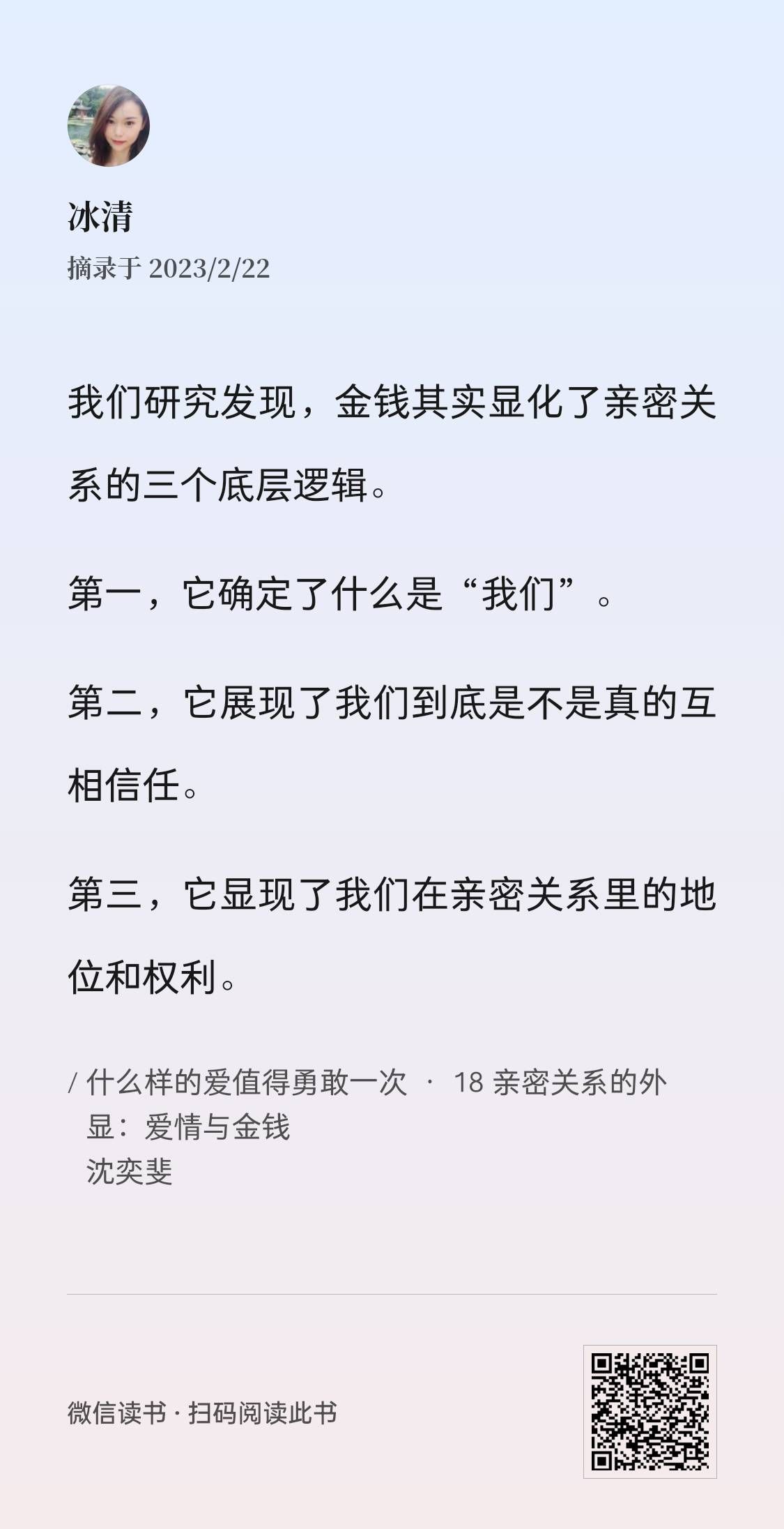对我启发最大的这两个点,其实只是书中并不重要的很小一部分,更多关于新旧爱情脚本,关于正确看待和处理差异等问题,都让人眼前一亮。