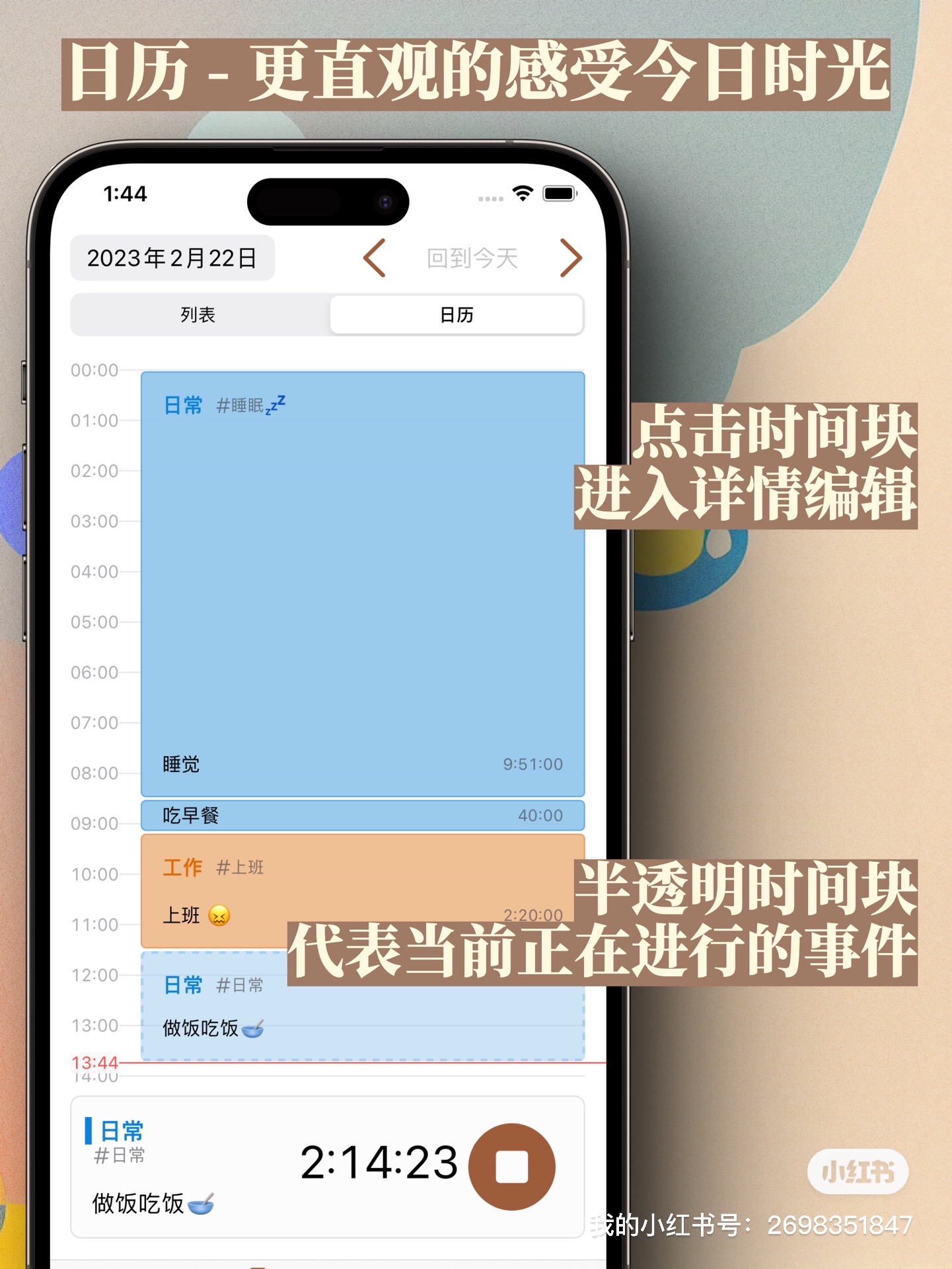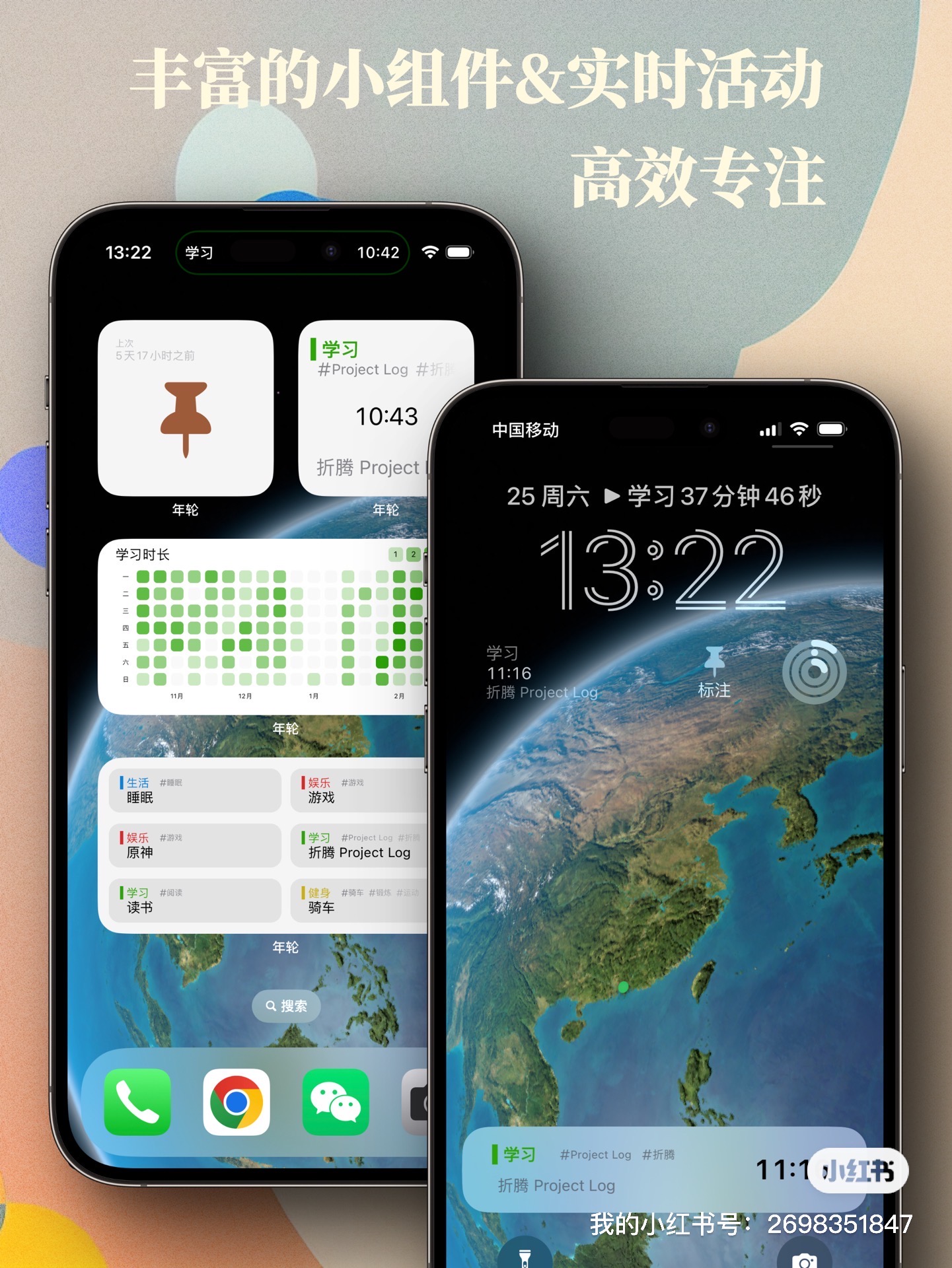 与主动提醒不同,年轮采用了一个被动的提醒方式,它通过灵动岛与实时活动,将计时固定存在于屏幕上,持续但不干扰地提醒你当前正在进行的事情是什么。这种被动提醒的方式可以让你在不被打断的前提下,保持专注,提高效率。