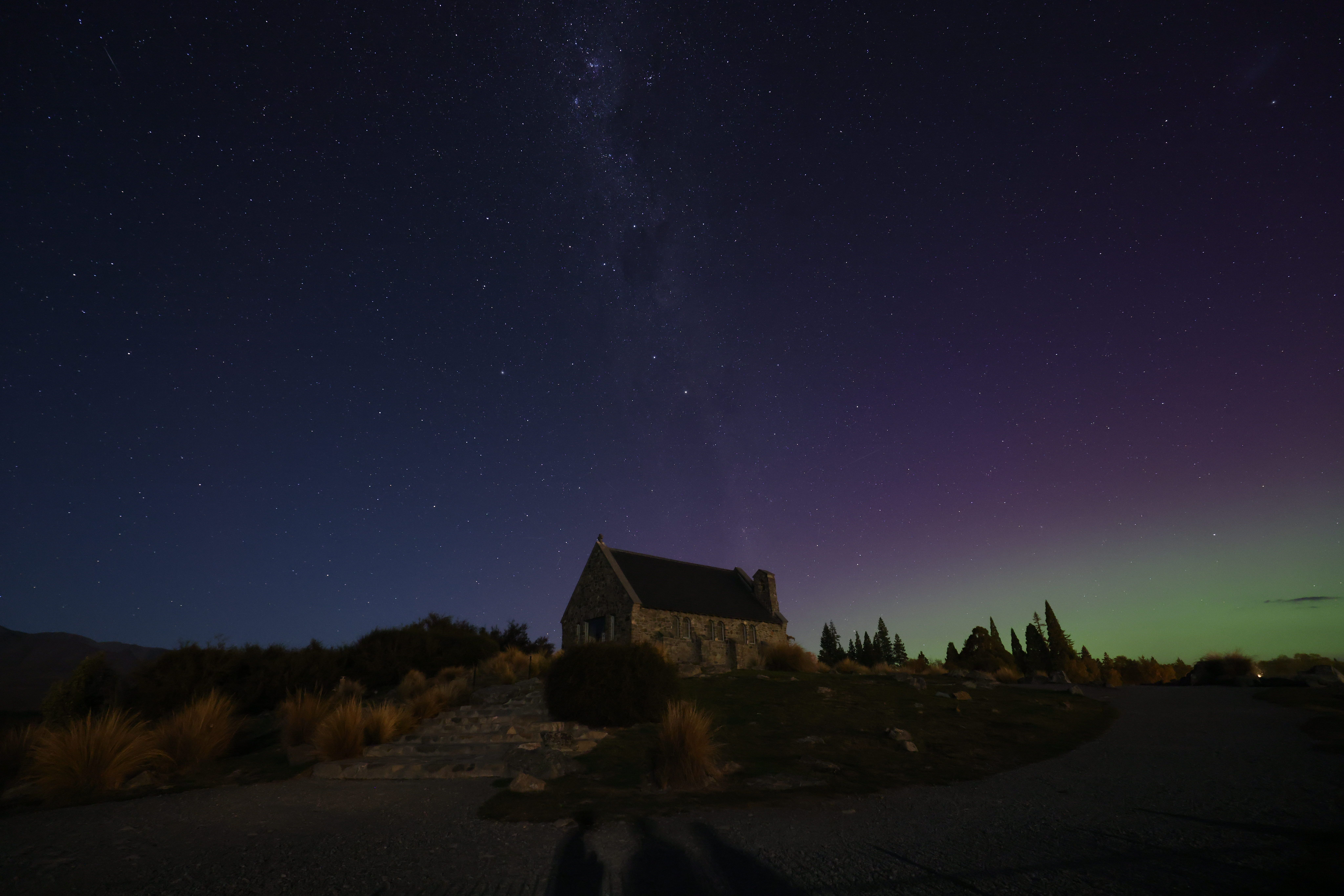 记录2月27日极光爆发 📍新西兰南岛Lake tekapo 好牧羊人教堂