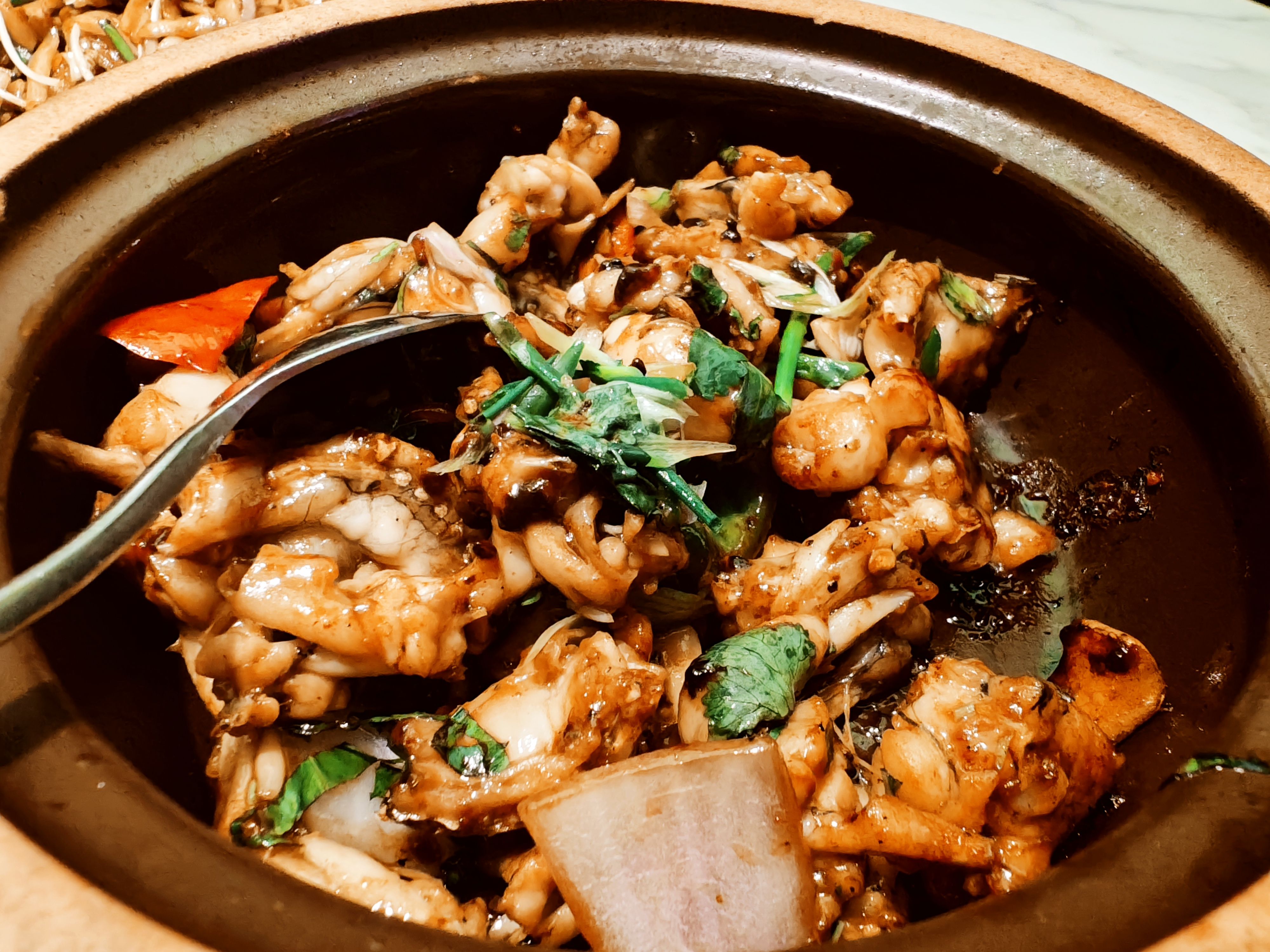浓浓的香料味道,田鸡很嫩。唯一的遗憾是上菜时间过长,砂锅内温度已然冷却。