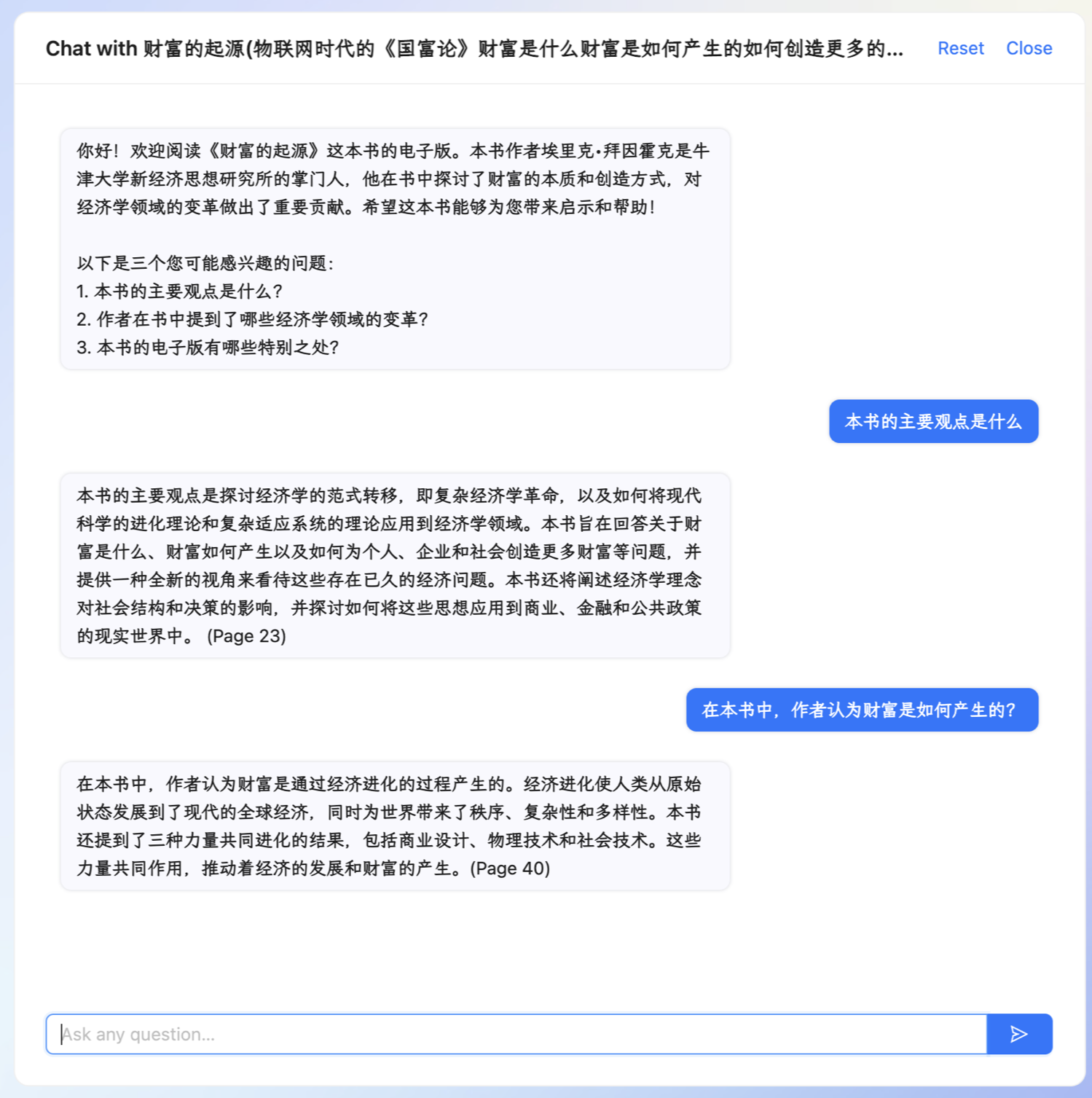 推荐一个工具,chat with any pdf,将pdf给这个网站解析之后,就可以对这个pdf进行提问了,用来看书了解作者的核心观点很好用。