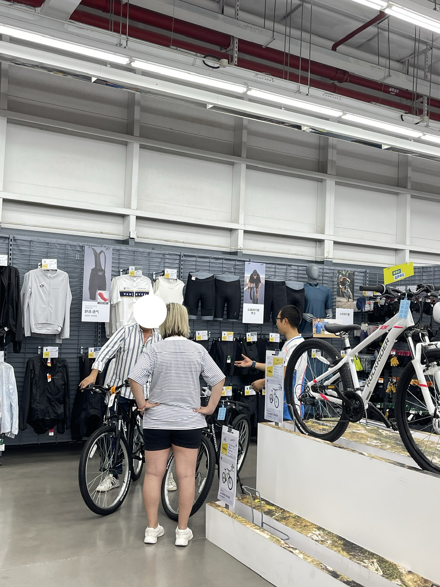 今天在迪卡侬兼职,临近晚饭时间遇到了两位国外顾客。我上前主动打招呼,问他们是否需要帮忙。男士很热情地说他们都是小白,不停地说you know表示他们住在乡下,就想骑个车到处溜达一下。我就让他们试骑感受一下。女士有点腼腆,不敢上去。男士积极地鼓励她坐上去。骑了一圈回来,她觉得不错。我跟他们讲解了一下车的尺寸和颜色,最后俩人都选了黑色,一个S码一个M码。我跟他们讲车需要调试,大概半小时,可以去逛一下看还有什么要买的。我顺便问男士有没有会员,有没有中国的手机号。他直接把手机给了我让我帮他操作。在生日那一栏我问他需要填吗?他摇摇头,我也表示理解,并说道,现在到处搜集个人信息。我发现他的手机界面不是英语,就问你是来自葡萄牙吗?他说是西班牙。我立马用西班牙语说我去过巴塞罗那三次。他也用西班牙语问我觉得怎样。我说很喜欢,您来自巴塞罗那吗?他说来自西班牙南部。注册好了会员,他们继续去其他区域逛。