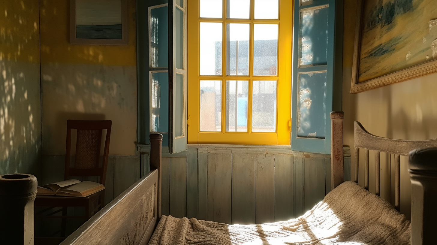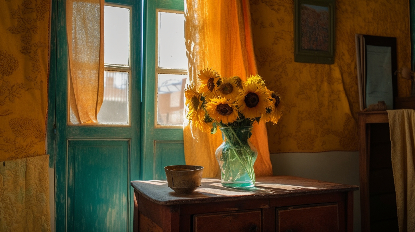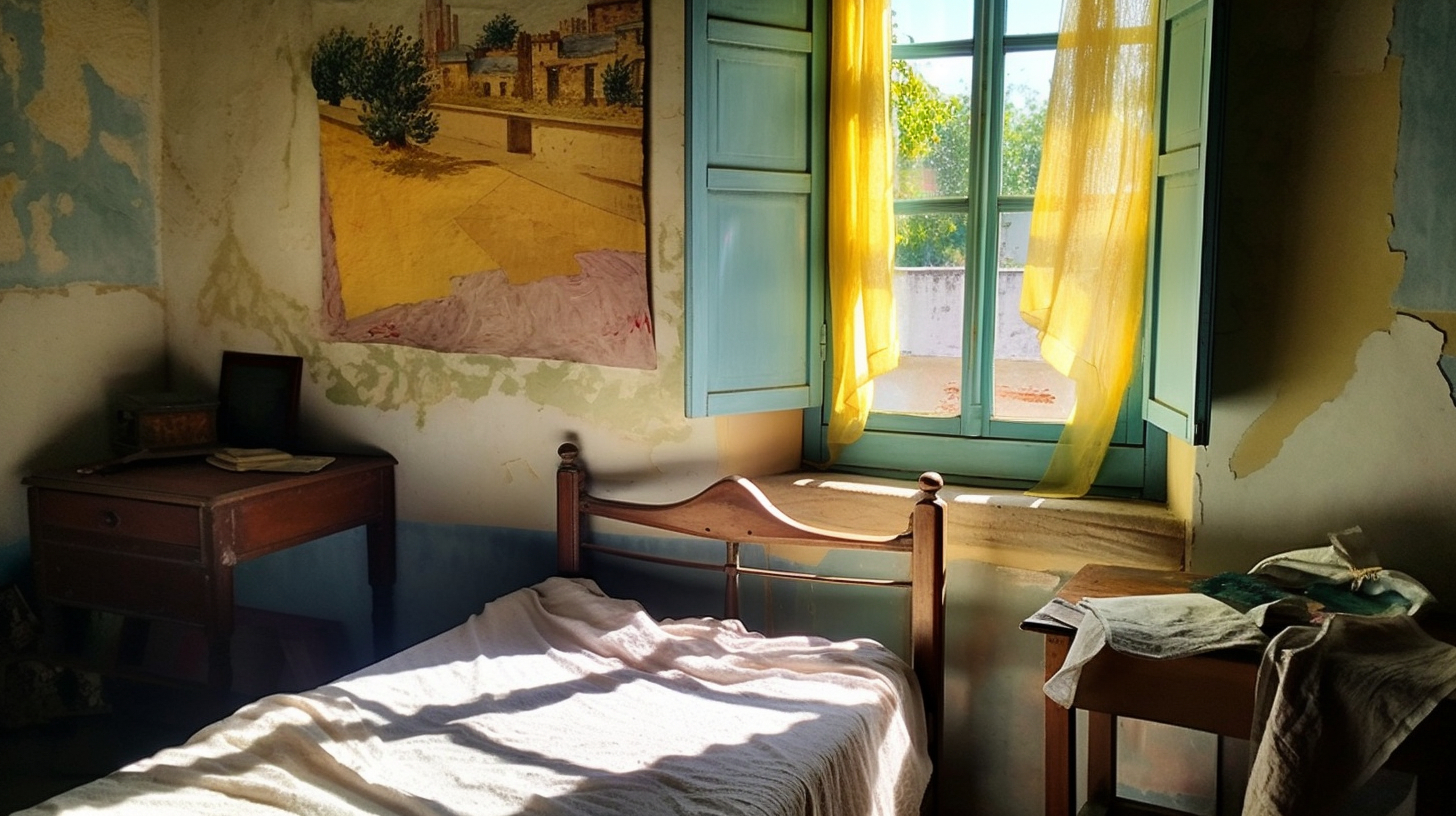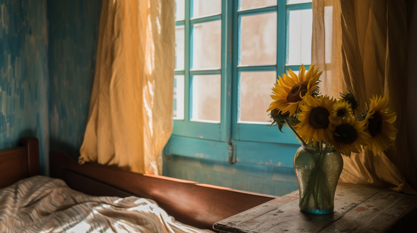 听说 Midjourney v5 的写实效果不错,于是试着让它给梵高的房间拍个照。