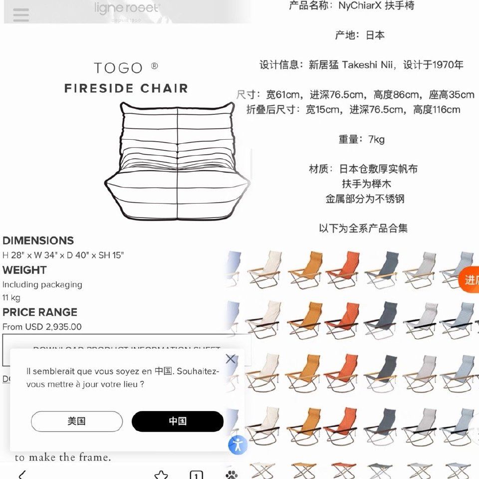 新家客厅的坐具,togo沙发是38,nychair是35,而且都是座深处更低,果然我坐着舒服,是有根据的。