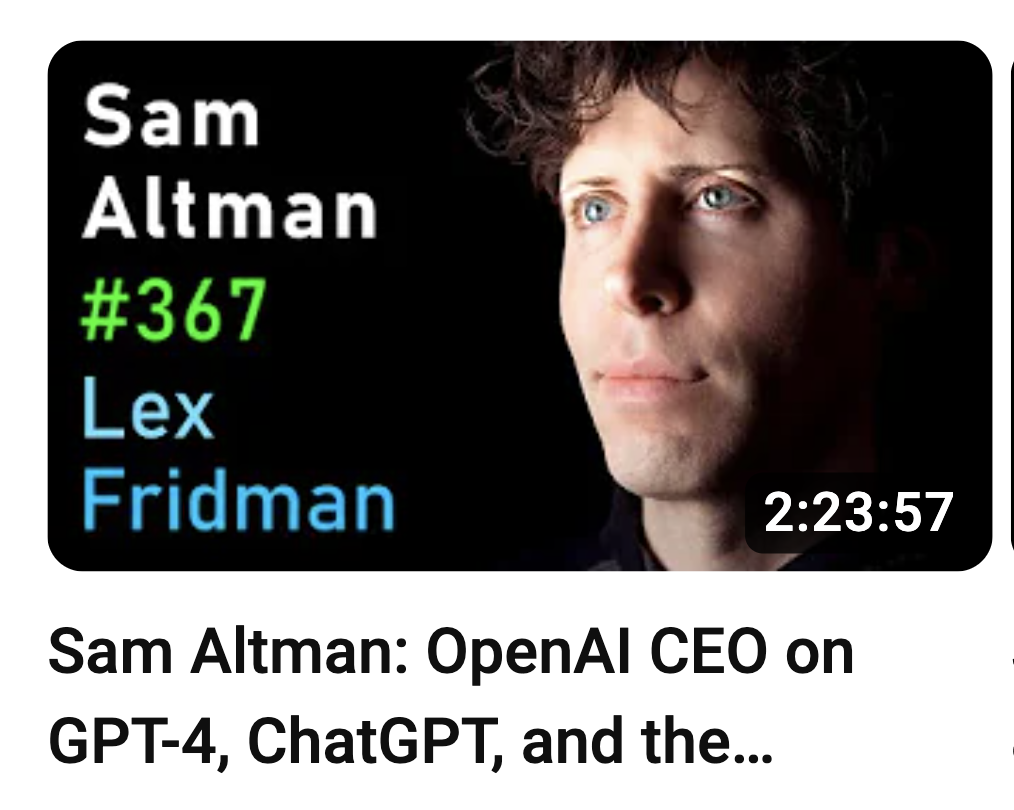 信息源:Sam Altman 与播客主 Lex Friedman 的对谈,录制于3月20日,发布于今天,时长2.5小时。我总结一下最有启发性的部分,预计今天更新完。TBC.