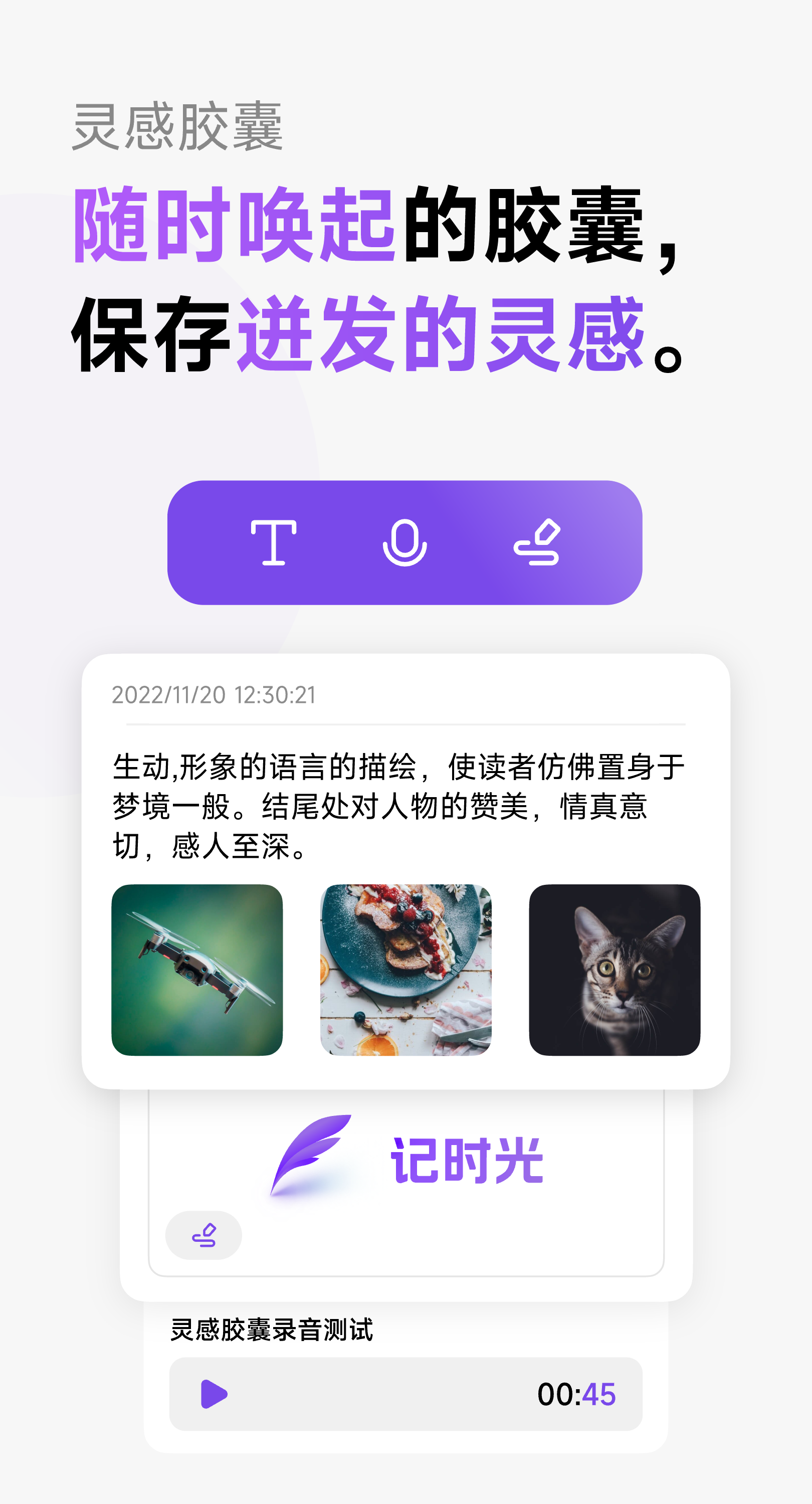 「灵感胶囊,不错过你的灵光乍现。」