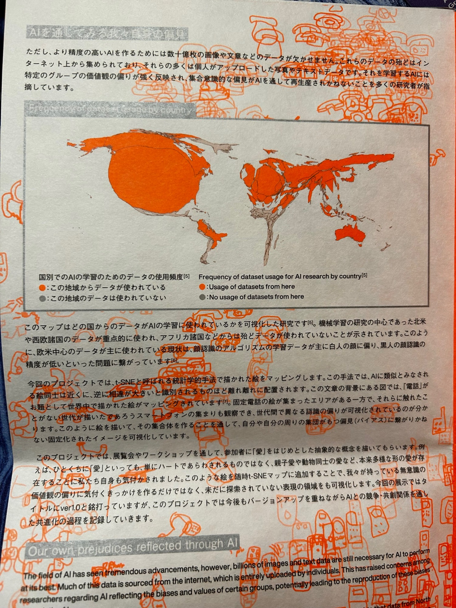 老实说,这也是我最喜欢的现场装置。1950 年,人们用图灵测试来提验证机器是否能思考,但 Deviation Game 的开发者们认为如今应该是 AI 和人类互相学习的时代,还考虑到了训练 AI 的数据都来自第一世界,非洲、部分南美、东南亚都是缺失的。