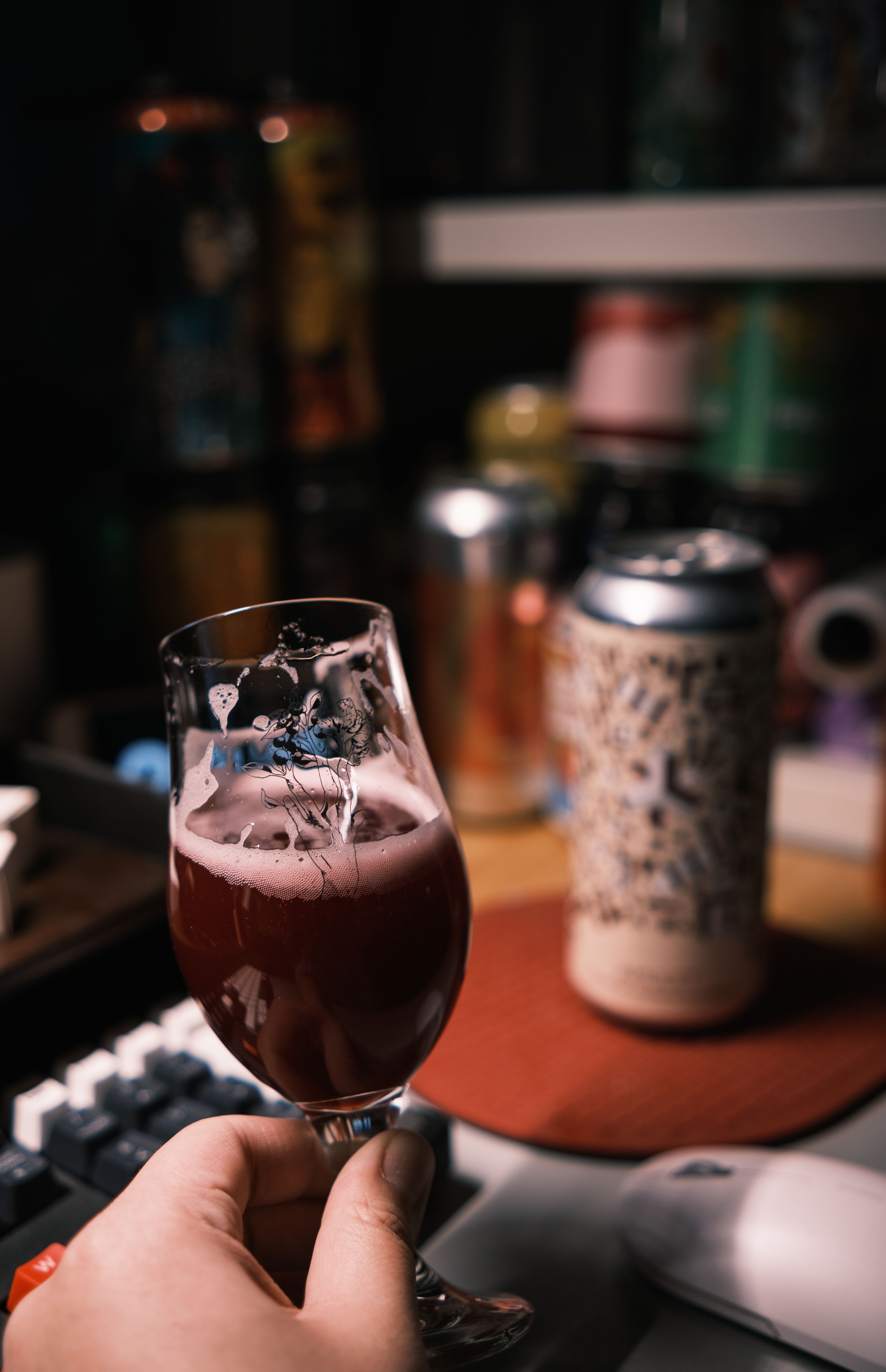 信风五的酒体和护身符蛮像,第一下闻上去有股莫名泡腾片的味道。但再仔细闻就会发现它是榛子杏仁和蓝莓红茶纠缠在一起的味道,里面东西挺多,风味是比较丰富的。
