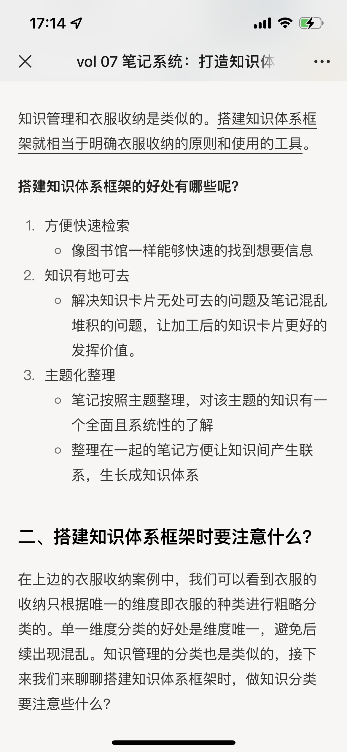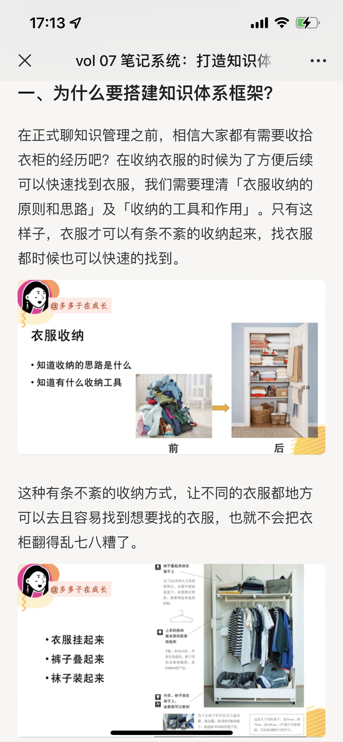 其实知识管理的储存环节有点像知识的收纳。聊到收纳也就联想到生活很多收纳的场景,例如衣服收纳、厨具收纳等等。举个例子吧,擅长收纳衣服的人会把衣柜划分区域按照一定的思路对衣服进行收纳,那想要知识收纳的有条不紊,我们也需要对知识体系的框架进行合理的分类,让知识有地可去~