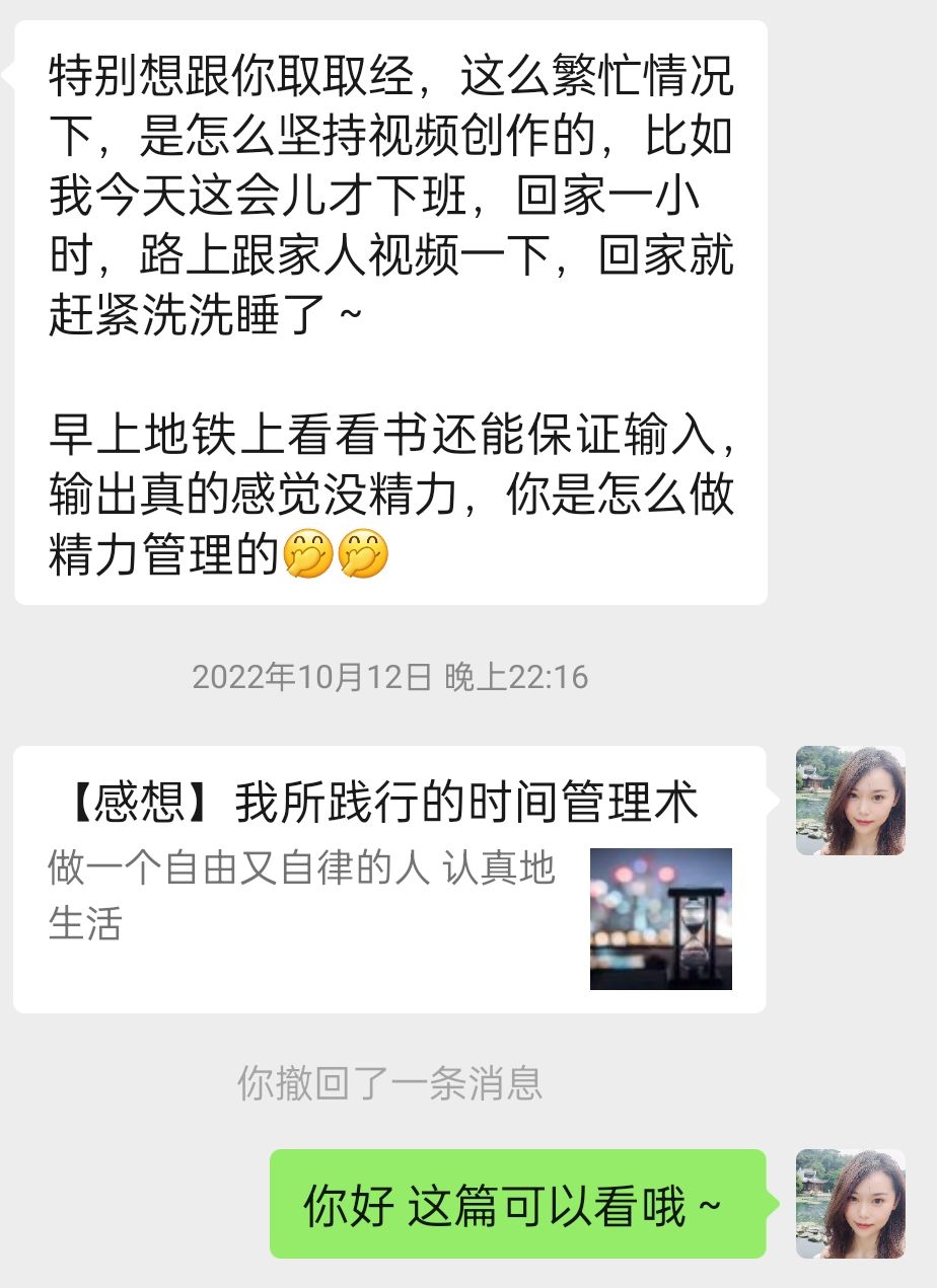1)如果对方来问的是共性的问题,我就梳理一下写成结构性文章发公众号,比如我曾写过时间管理、写过运动减脂方法等等。